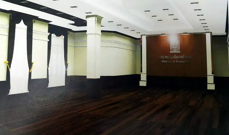 “สำหรับการตกแต่งภายใน จะยังคงตกแต่งด้วยความงดงามตามภาพ โดยคาดว่าโครงการทั้งหมดจะแล้วเสร็จได้ทันตามเป้าหมายที่กำหนดไว้ในเดือนตุลาคม 2560 และหลังจากได้บูรณะซ่อมแซมเรียบร้อยแล้ว จะเป็นที่ทำการของรัฐมนตรี รวมทั้งข้าราชการสำนักงานรัฐมนตรี สำนักงานปลัดกระทรวง กระทรวงศึกษาธิการ โดยกรมศิลปากรจะขึ้นทะเบียนอนุรักษ์ต่อไป”