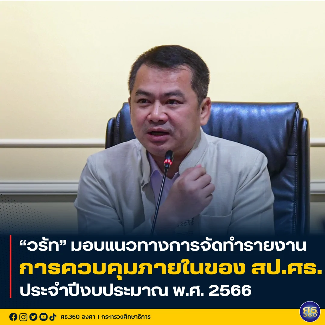 20 ตุลาคม 2566 – นายวรัท พฤกษาทวีกุล หัวหน้าผู้ตรวจราชการกระทรวงศึกษาธิการ รักษาราชการแทนรองปลัดกระทรวงศึกษาธิการ เป็นประธานการประชุมคณะทำงานจัดทำรายงานการควบคุมภายในของสำนักงานปลัดกระทรวงศึกษาธิการ ประจำปีงบประมาณ พ.ศ. 2566 โดยมีผู้แทนจากหน่วยงานสังกัดส่วนกลาง สำนักงานคณะกรรมการข้าราชการครูและบุคลากรทางการศึกษา สำนักงานคณะกรรมการส่งเสริมการศึกษาเอกชน สำนักงานศึกษาธิการภาค 1-18 และสำนักงานศึกษาธิการจังหวัด 77 จังหวัด เข้าร่วมประชุม ณ ห้องประชุมจันทรเกษม กระทรวงศึกษาธิการ และผ่านระบบ ZOOM