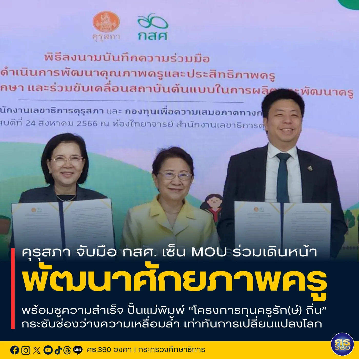 คุรุสภา จับมือ กสศ. เซ็น MOU ร่วมเดินหน้าพัฒนาศักยภาพครู พร้อมชูความสำเร็จ ปั้นแม่พิมพ์ “โครงการทุนครูรัก(ษ์) ถิ่น” กระชับช่องว่างความเหลื่อมล้ำ เท่าทันการเปลี่ยนแปลงของโลก