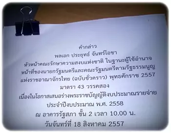 คณะรักษาความสงบแห่งชาติ (คสช.) ได้กำหนดนโยบายและแนวทางการจัดสรรงบประมาณที่สำคัญ ดังนี้
