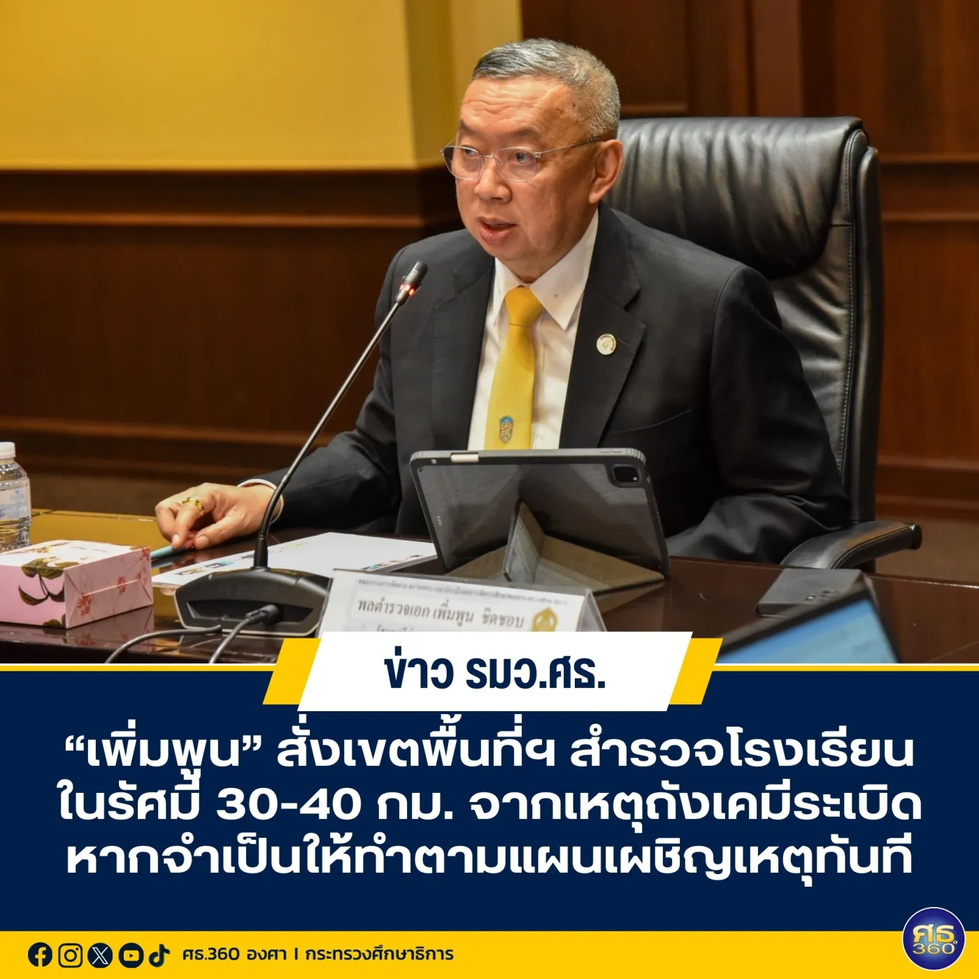 “เนื่องจากช่วงนี้เป็นสัปดาห์เตรียมความพร้อมเปิดภาคเรียนที่ 1 ปีการศึกษา 2567 ศธ.ได้มีการเตรียมความพร้อม ซักซ้อมการดูแลความปลอดภัยด้านต่าง ๆ ที่อาจเกิดขึ้นในทุกมิติอยู่แล้ว ซึ่งเหตุระเบิดและเพลิงไหม้ถังเก็บสารเคมีครั้งนี้ถือเป็นสถานการณ์ฉุกเฉิน แต่ยังดีที่เป็นช่วงปิดเทอม ดังนั้นเพื่อสุขภาพอนามัยของนักเรียน ผู้ปกครอง ครู และบุคลากรการศึกษา ที่อาจได้รับผลกระทบจากอากาศปนเปื้อนสารเคมี ผมจึงได้สั่งการให้เขตพื้นที่ฯ และ ผอ.โรงเรียน ในรัศมี 30-40 กม. จากที่เกิดเหตุว่ามีผลกระทบหรือไม่ หากมีความเสี่ยงที่อาจเกิดขึ้นกับสุขภาพของครู นักเรียน บุคลากร ผู้ปกครอง ขอให้ดำเนินการตามแผนเผชิญเหตุทันที หรือประสานหน่วยงานที่ดูแลพื้นที่และศูนย์ความปลอดภัย สพฐ.ได้โดยตรง” รมว.ศธ. กล่าว