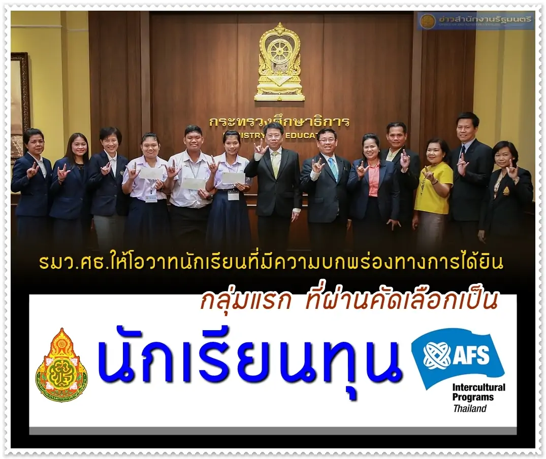 ซึ่งในปีนี้เป็นปีแรกที่มีนักเรียนพิการบกพร่องทางการได้ยิน จากโรงเรียนเฉพาะความพิการ สังกัดสำนักงานบริหารงานการศึกษาพิเศษ สพฐ. ผ่านการคัดเลือกเป็น “นักเรียนทุนโครงการเยาวชนเอเอฟเอส เพื่อการศึกษาและแลกเปลี่ยนวัฒนธรรมนานาชาติ ระยะ 1 ปี รุ่นที่ 57 (พ.ศ.2561-2562)” ณ สหรัฐอเมริกา ประเภททุนรัฐบาลสหรัฐอเมริกา จำนวน 3 ราย ได้แก่