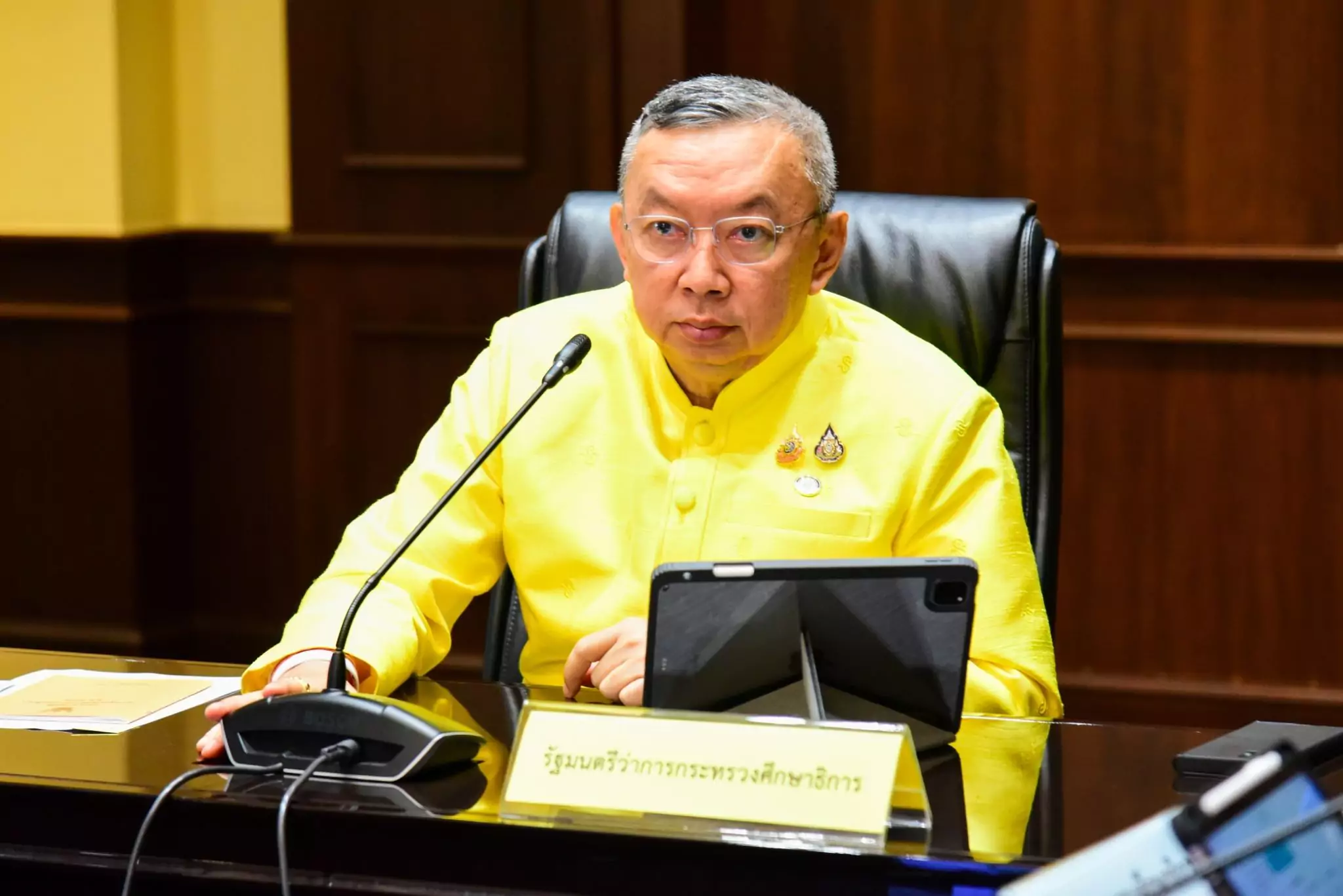 “อีกสิ่งหนึ่งที่ รมว.ศธ. อยากสื่อสารกับทุกท่านคือ เหตุอุทกภัยที่เกิดขึ้นอย่างรุนแรงในพื้นที่ทางภาคเหนือ โดยเฉพาะจังหวัดเชียงราย สาเหตุสำคัญคือบนที่สูงมีต้นไม้ลดลงจำนวนมาก จึงไม่มีพื้นที่รับน้ำ ดังนั้นจึงต้องพยายามปลูกฝังเด็กและเยาวชน รวมถึงประชาชนทุกคน ให้ช่วยกันอนุรักษ์ต้นไม้ ร่วมกันรณรงค์การปลูกป่า และสร้างจิตสำนึกในการรักป่า ลดการทำไร่เลื่อนลอยแผ้วถางป่าฯ เพื่อช่วยบรรเทาเหตุอุทกภัยที่อาจเกิดขึ้นในอนาคต ร่วมมือกันแก้ปัญหาที่ต้นเหตุ ร่วมใจช่วยเหลือซึ่งกันและกัน เพื่อสวัสดิภาพและความปลอดภัยของชาวกระทรวงศึกษาธิการทุกคน”