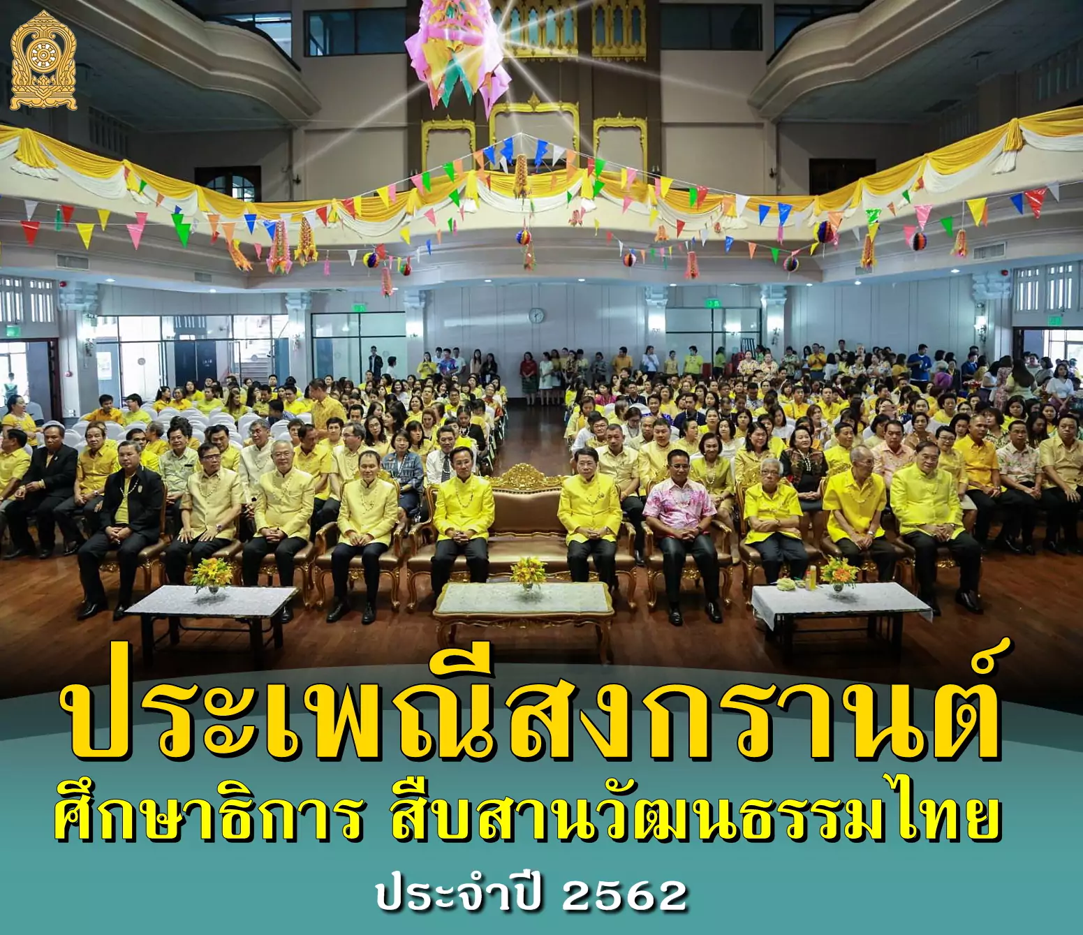 นายการุณ สกุลประดิษฐ์ ปลัดกระทรวงศึกษาธิการ กล่าวถึงการจัดงานในปีนี้ว่า กระทรวงศึกษาธิการจัดงานรดน้ำขอพรเนื่องในโอกาสวันสงกรานต์ ประจำปี 2562 ภายใต้ชื่อ “ประเพณีสงกรานต์ ศึกษาธิการสืบสานวัฒนธรรมไทย” เพื่อขอพรจากผู้บังคับบัญชาและผู้อาวุโสตามประเพณีอันดีงาม แสดงถึงความกตัญญู กตเวทิตาคุณต่อผู้ใหญ่ รวมทั้งสืบสานอนุรักษ์วัฒนธรรมไทยให้คงอยู่สืบไป และโอกาสนี้ปลัดกระทรวงศึกษาธิการได้กล่าวคำอำนวยพรแก่ผู้เข้าร่วมงานทุกท่านด้วย