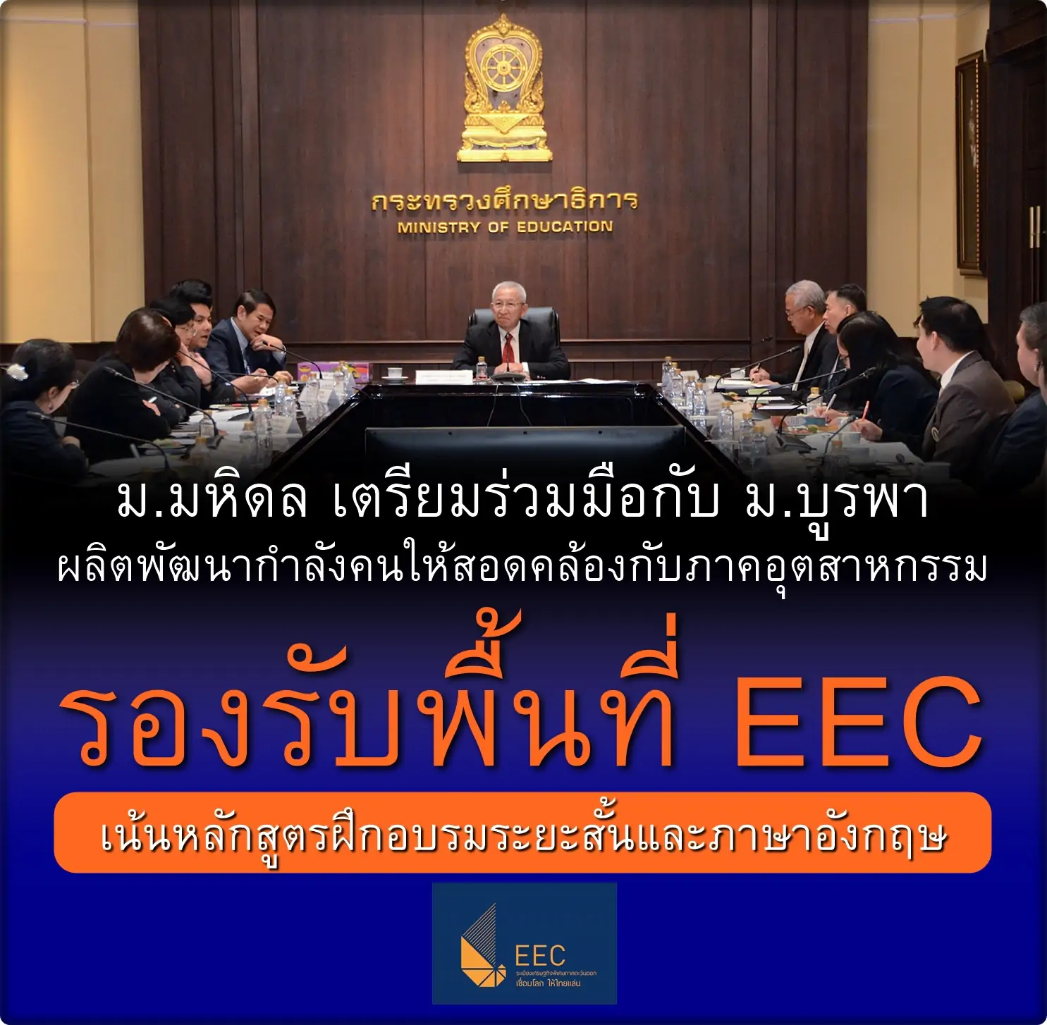 ศ.คลินิก นพ.อุดม คชินทร รมช.ศธ. ประชุมหารือกับ ดร.คณิต แสงสุพรรณ เลขาธิการคณะกรรมการนโยบายเขตพัฒนาพิเศษภาคตะวันออก (EEC) เพื่อดึงมหาวิทยาลัยนอกเขต EEC เข้ามาช่วยผลิตพัฒนากำลังคนให้สอดคล้องกับภาคอุตสาหกรรมในพื้นที่ โดย ม.มหิดล-บูรพา จะร่วมฝึกอบรมระยะสั้น และส่งเสริม Technical English ให้กับกำลังคนในแต่ละสาขาอาชีพ