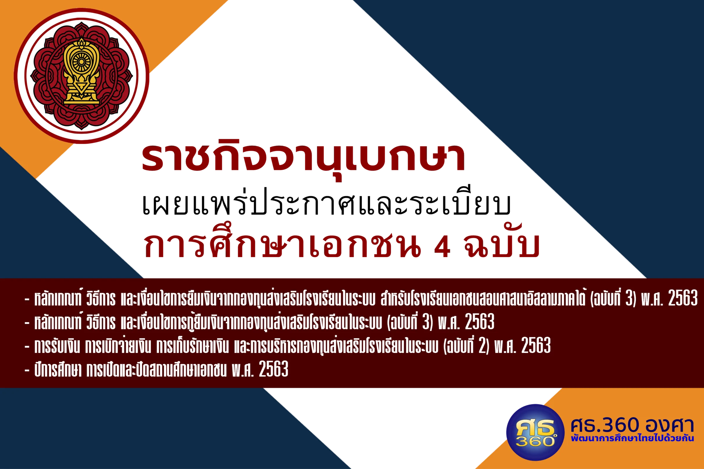 ราชกิจจานุเบกษา เมื่อวันที่ 20 มีนาคม 2563 เผยแพร่ประกาศและระเบียบที่เกี่ยวข้องกับการศึกษาเอกชน 4 ฉบับ