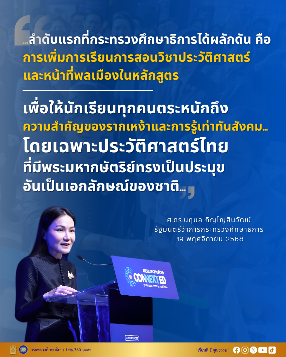 20 พ.ย. 68 รมว.ศธ. “นฤมล” ร่วมงานการประชุม CONNEXT ED EDUCATION FORUM 2025 ณ ห้องประชุมแกรนด์ฮอลล์ ชั้น 3 อาคารทรู ดิจิทัล พาร์ค