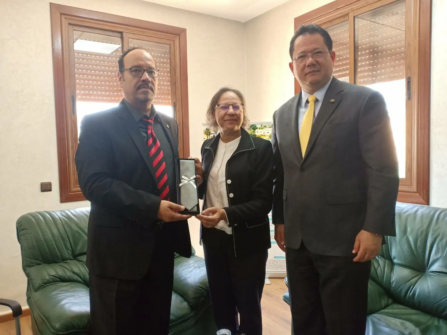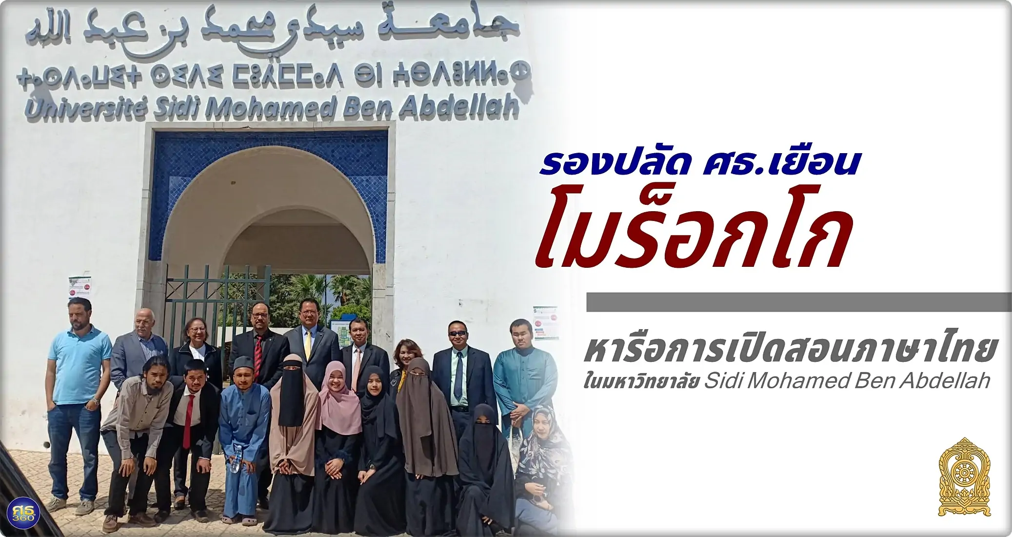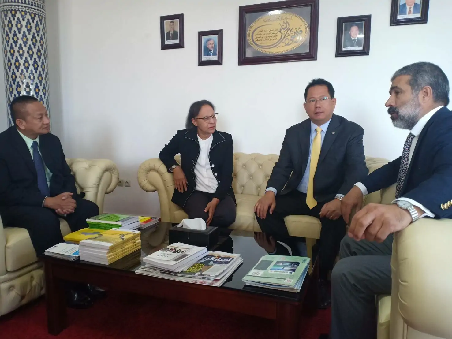 ราชอาณาจักรโมร็อกโก – เมื่อวันที่ 19 มิถุนายน 2562 เวลา 9.30 น. นางสาวดุริยา อมตวิวัฒน์ รองปลัดกระทรวงศึกษาธิการ พร้อมด้วยนายดามพ์ บุญธรรม เอกอัครราชทูตไทย ณ กรุงราบัต นำคณะผู้แทนไทยเข้าพบกับ Dr. Khailid LAZAAZ คณบดีคณะศิลปศาสตร์และมนุษยศาสตร์ มหาวิทยาลัย Sidi Mohamed Ben Abdellah แห่งที่ 1 เพื่อแลกเปลี่ยนความคิดเห็นเกี่ยวกับการเปิดสอนภาษาไทยในโมร็อกโก