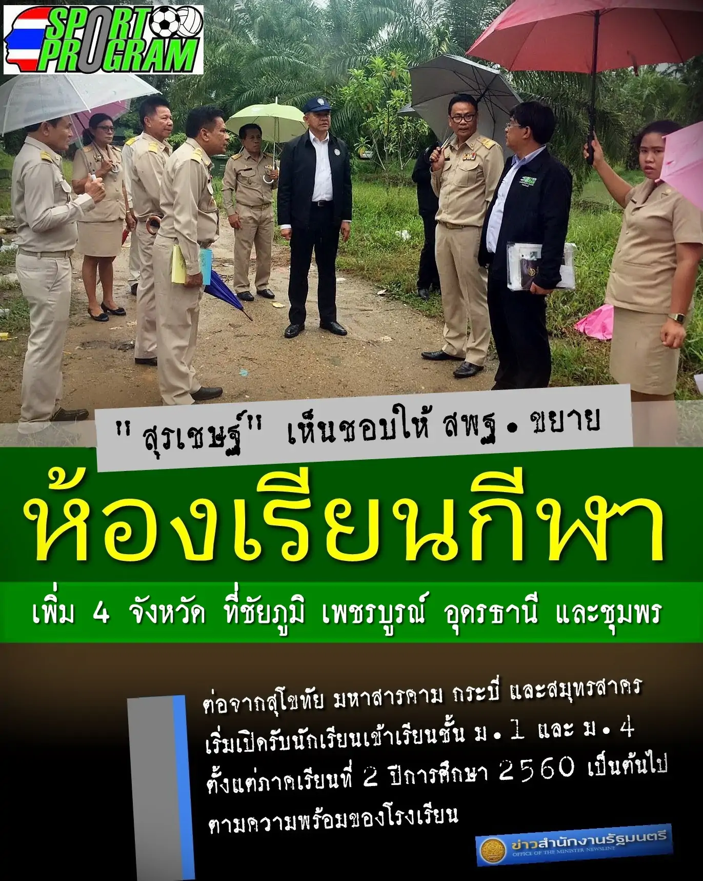 เพิ่มห้องเรียนกีฬาอีก 4 จังหวัด