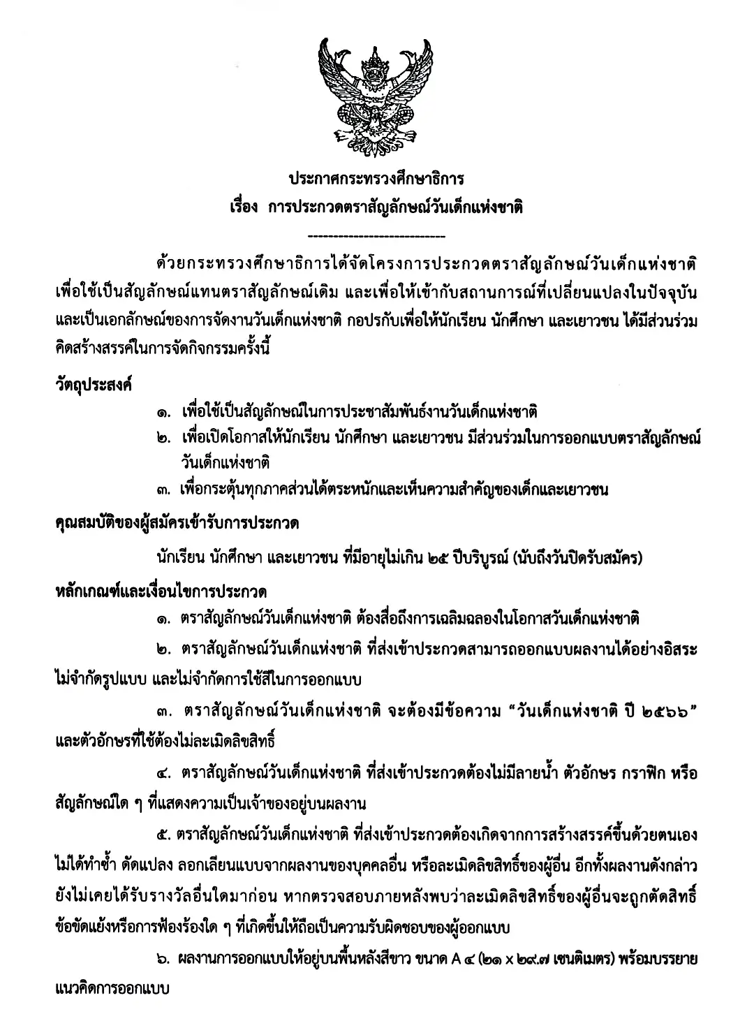 หลักเกณฑ์และเงื่อนไขการประกวดตราสัญลักษณ์วันเด็กแห่งชาติ