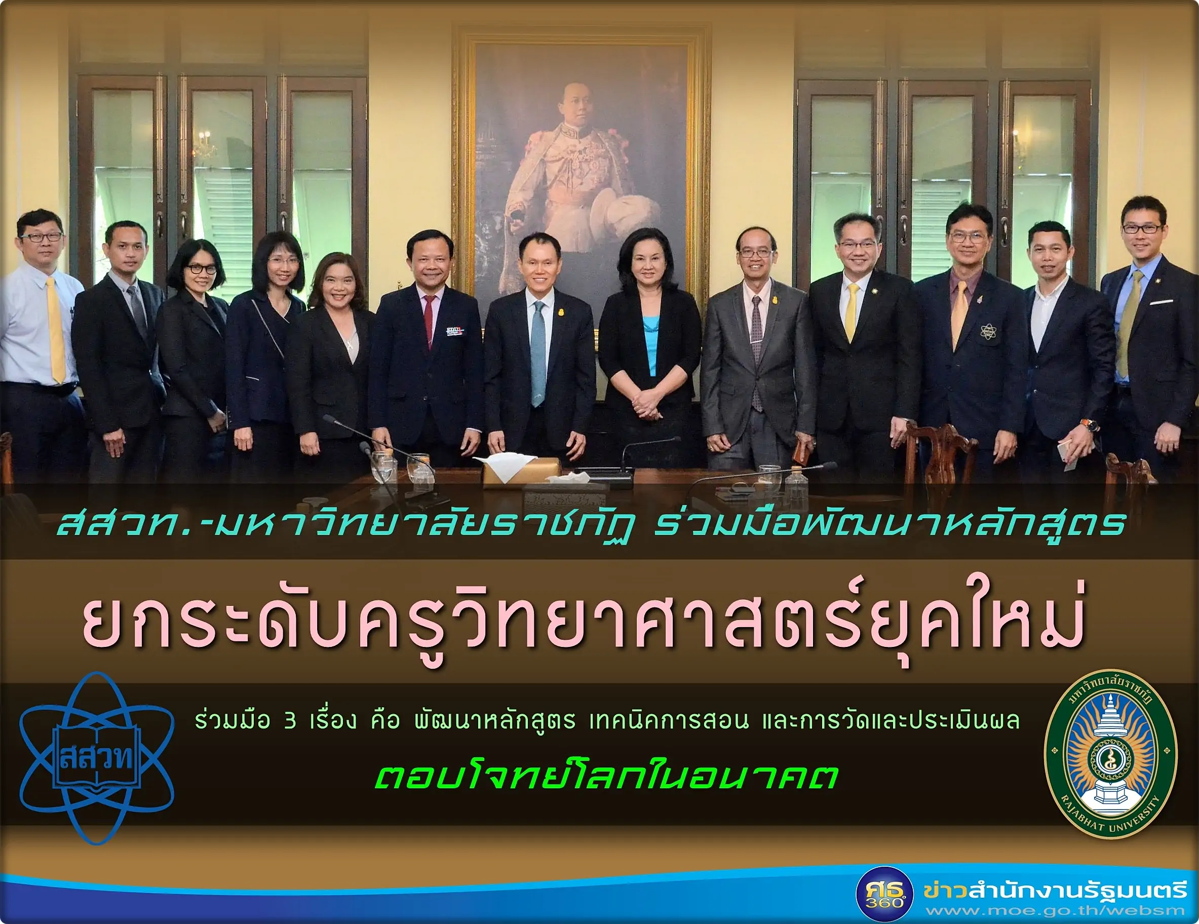 ผศ.ดร.วีรสิทธิ์ สิทธิไตรย์ ที่ปรึกษารัฐมนตรีช่วยว่าการกระทรวงศึกษาธิการ (ศาสตราจารย์คลินิก นพ.อุดม คชินทร รัฐมนตรีช่วยว่าการกระทรวงศึกษาธิการ) พร้อมด้วย ม.ล.ปริยดา ดิศกุล เลขานุการรัฐมนตรีว่าการกระทรวงศึกษาธิการ หารือความร่วมมือการจัดทำหลักสูตรพัฒนาครู เพื่อยกระดับการเรียนการสอนวิทยาศาสตร์ยุคใหม่ ระหว่างสถาบันส่งเสริมการสอนวิทยาศาสตร์และเทคโนโลยี (สสวท.) และมหาวิทยาลัยราชภัฏ (มรภ.) 38 แห่ง