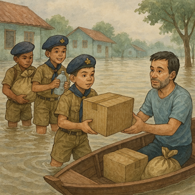 ลูกเสือเอก: “เห็นไหมโท วันนี้เราช่วยคุณยาย เก็บขยะ บอกทาง รดน้ำต้นไม้ และช่วยหมาบาดเจ็บ… ปมของฉันแก้ได้แล้ว!”