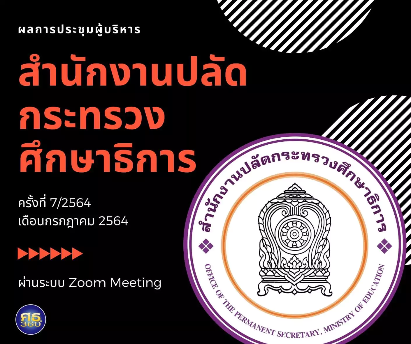 ผลการประชุมผู้บริหารสำนักงานปลัดกระทรวงศึกษาธิการ เดือนกรกฎาคม 2564