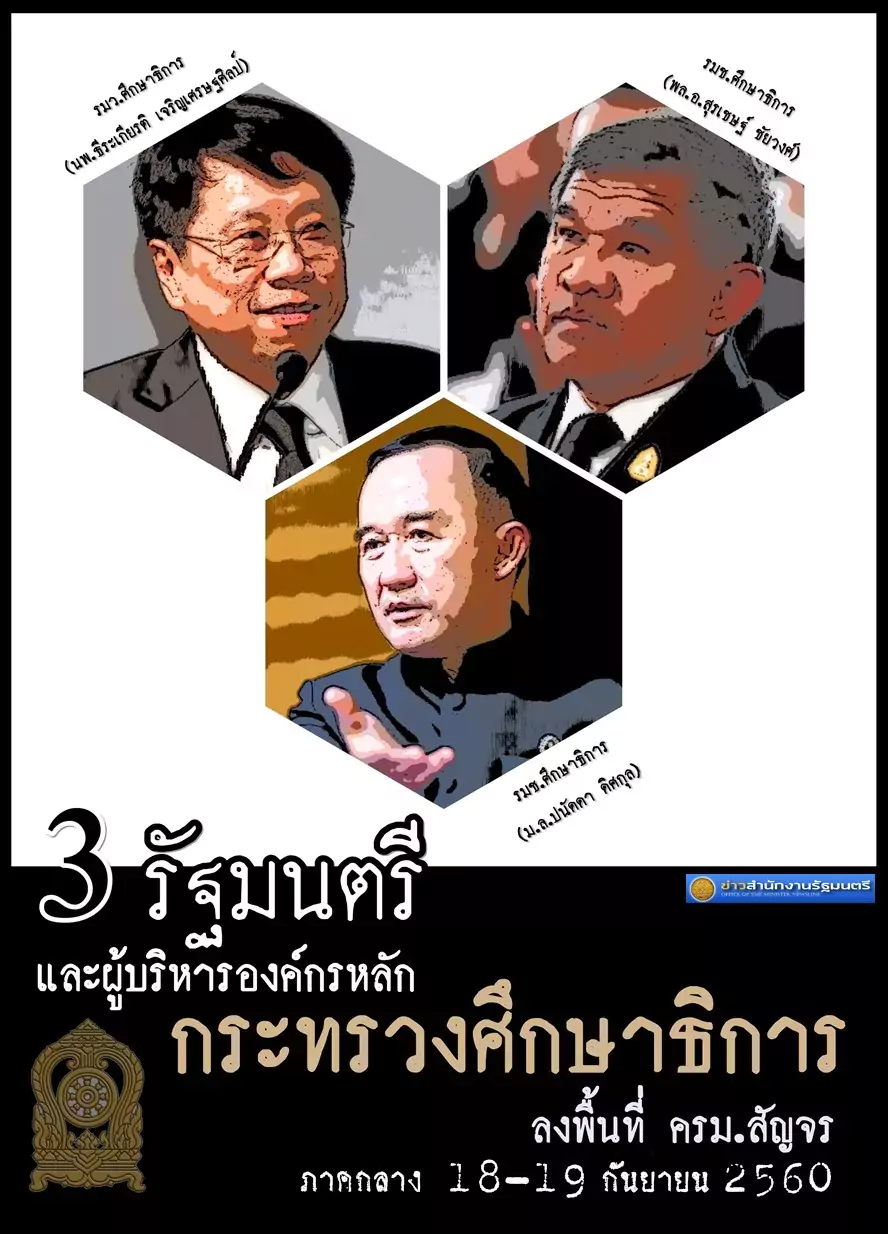 สำหรับกำหนดการภารกิจการลงพื้นที่ติดตามงานของรัฐมนตรีและคณะผู้บริหารองค์กรหลักของกระทรวงศึกษาธิการ ในวันที่ 18-19 กันยายน 2560 มีดังนี้