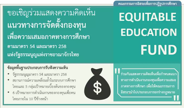 แนวทางการจัดตั้งกองทุนเพื่อความเสมอภาคทางการศึกษา (Equitable Education Fund)