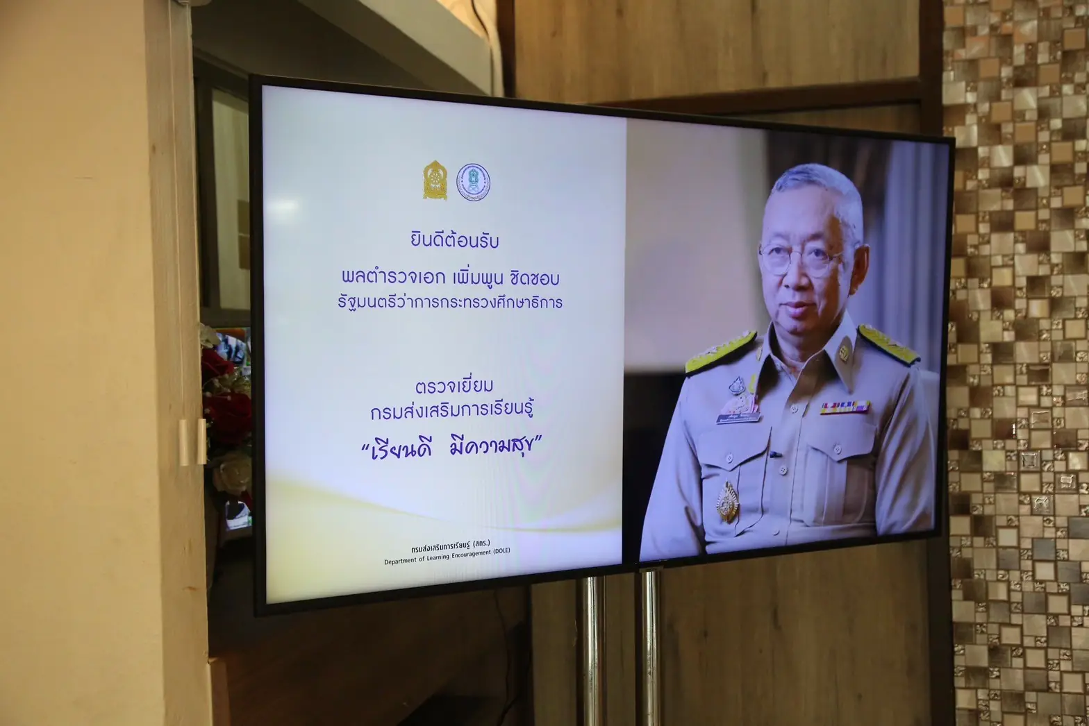 วันนี้ (18 มกราคม 2567) เวลา 10.00 น. พลตำรวจเอก เพิ่มพูน ชิดชอบ รัฐมนตรีว่าการกระทรวงศึกษาธิการ (รมว.ศธ.) พร้อมด้วย นายนพ ชีวานันท์ เลขานุการ รมว.ศธ. ตรวจเยี่ยมการทำงานของกรมส่งเสริมการเรียนรู้ (สกร.) โดยมี นายธนากร ดอนเหนือ ผู้ตรวจราชการกระทรวงศึกษาธิการ รักษาราชการแทนอธิบดีกรมส่งเสริมการเรียนรู้ ผู้บริหาร และข้าราชการ สกร. เข้าร่วม ณ ห้องประชุมบรรจง ชูสกุลชาติ สกร. และผู้อำนวยการ สกร.จังหวัดทั่วประเทศ เข้าร่วมผ่านระบบ Zoom meeting และถ่ายทอดทางเฟซบุ๊ก ETV Channel