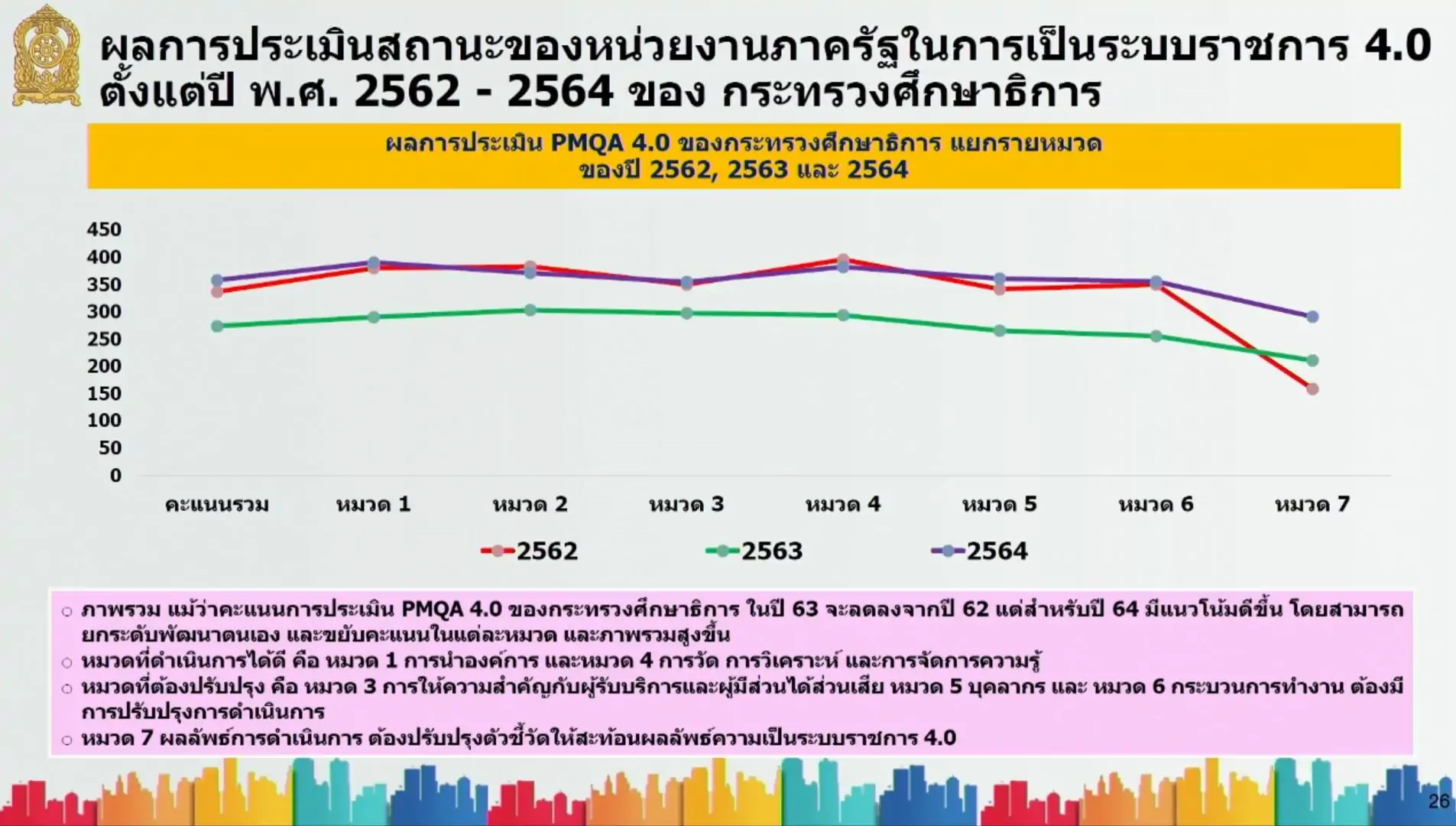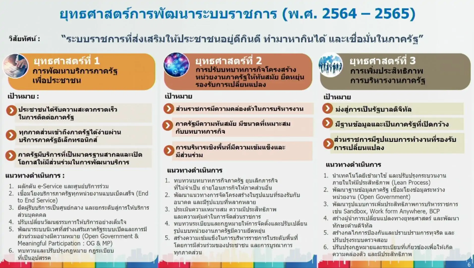 ขอเป็นกำลังใจให้ทุกท่าน ได้ดำเนินงานสำเร็จตามเป้าหมาย สามารถจัดทำยุทธศาสตร์การพัฒนาระบบราชการของ ศธ. ปี พ.ศ. 2565 – 2570 ซึ่งคาดว่าน่าจะแล้วเสร็จในเดือนธันวาคม 2565 เพื่อเป็นกรอบทิศทางการดำเนินงาน ให้ส่วนราชการทั้งส่วนกลางและส่วนภูมิภาคนำไปใช้ในการพัฒนากระบวนการทำงานไปสู่ระบบราชการ 4.0 และหากมีความก้าวหน้าในการดำเนินงานประการใด ขอแจ้งให้ทราบด้วย