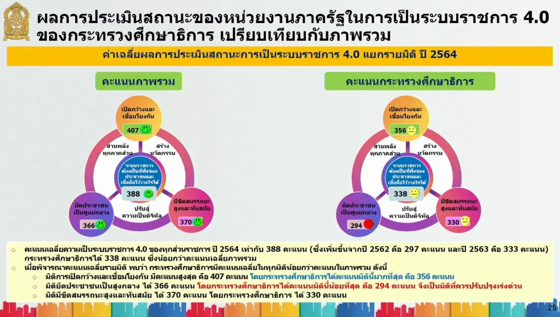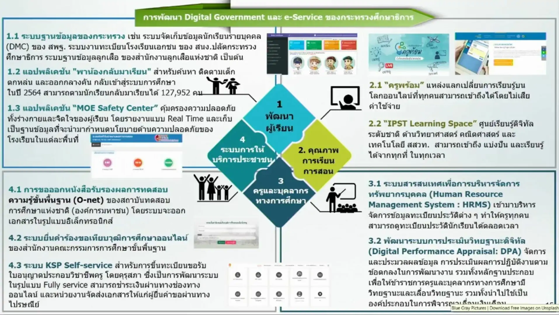 กระทรวงศึกษาธิการ (ศธ.) จึงมีภารกิจสำคัญในการเชื่อมโยงทุกภาคส่วนของสังคม เพื่อให้สามารถจัดการศึกษาเห็นผลเป็นรูปธรรม และขับเคลื่อนนโยบายสำคัญสร้างภูมิคุ้มกันให้แก่เด็กไทยในโลกแห่งดิจิทัล ซึ่งเทคโนโลยีดิจิทัลมีบทบาทสำคัญในการเรียนรู้ผ่านระบบออนไลน์จำเป็นต้องเรียนรู้โค้ดดิ้ง (Coding) เพื่อสามารถแก้ปัญหาที่สลับซับซ้อนได้มากยิ่งขึ้น การเรียนการสอนวิทยาศาสตร์ เทคโนโลยี และนวัตกรรม (STI) นำมาปรับใช้ในชีวิตและทำงานให้มีประสิทธิภาพมากยิ่งขึ้น การเรียนการสอนสะเต็มศึกษา (STEAM) เป็นการพัฒนาต่อยอดจาก STEM ที่เพิ่มสาระศิลปวัฒนธรรมการใช้ชีวิต (Art) ซึ่งเป็นองค์ความรู้สำคัญในการใช้ชีวิตอยู่ร่วมกับผู้อื่น และที่สำคัญที่สุดต้องปรับเปลี่ยนบทบาทของครู จากผู้สอนเป็นผู้อำนวยความสะดวกในการเรียนรู้ยกระดับคุณภาพทางการศึกษาที่มีประสิทธิภาพ เน้นให้ผู้เรียนคิดอย่างมีระบบ เปลี่ยนวิธีการประเมินเป็นการได้เรียนรู้จากชีวิตจริง
