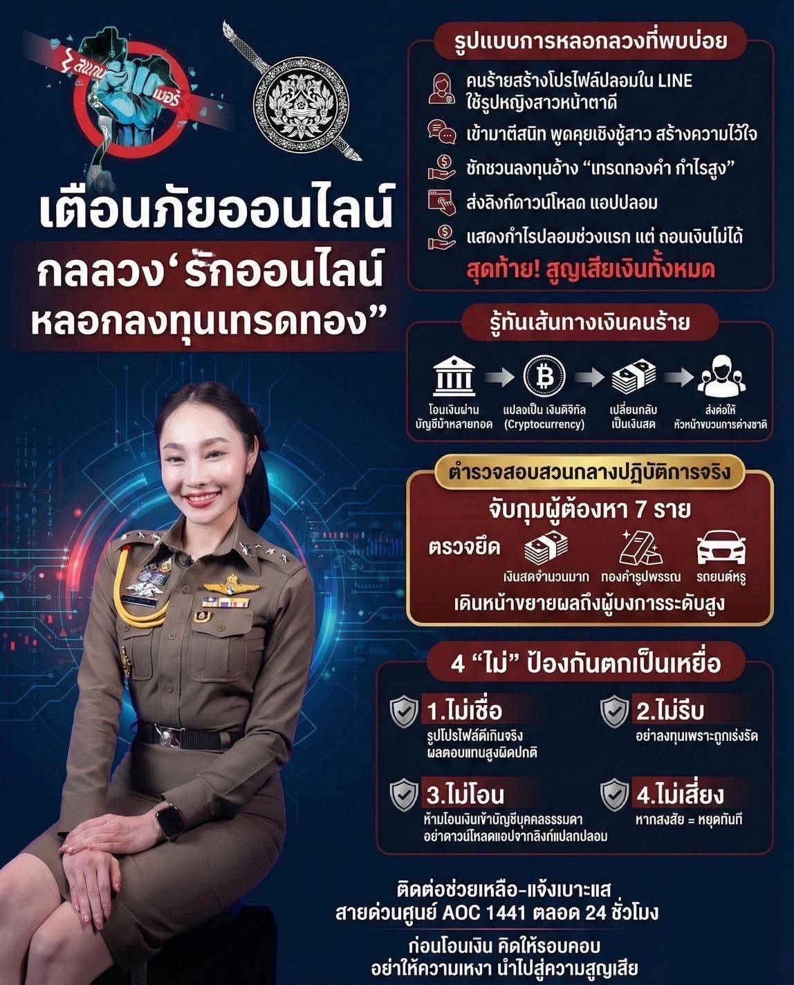 กระบวนการที่เป็นระบบนี้ยืนยันว่านี่ไม่ใช่การกระทำของคนเพียงคนเดียว แต่เป็นปฏิบัติการขององค์กรอาชญากรรมข้ามชาติที่วางแผนมาอย่างรัดกุม แม้กลโกงจะซับซ้อน แต่การทำงานของเจ้าหน้าที่ตำรวจก็ได้ไล่ตามเครือข่ายเหล่านี้เช่นกัน โดยล่าสุด ตำรวจสืบสวนสอบสวนกลาง (CIB) ได้เข้าจับกุมผู้ต้องหาในขบวนการนี้ได้ พร้อมตรวจยึดของกลางเป็นเงินสด ทองคำรูปพรรณ และรถยนต์หรูจำนวนมาก การจับกุมครั้งนี้เป็นเครื่องยืนยันว่ากลโกงเหล่านี้คืออาชญากรรมที่เกิดขึ้นจริง และมีผลกระทบที่รุนแรง แต่ก็แสดงให้เห็นถึงความพยายามของเจ้าหน้าที่ในการหยุดยั้งความเสียหายและนำตัวผู้กระทำผิดมาลงโทษ