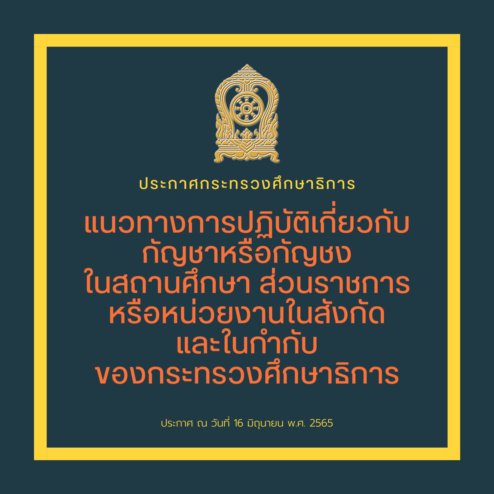 16 มิถุนายน 2565 / น.ส.ตรีนุช เทียนทอง รัฐมนตรีว่าการกระทรวงศึกษาธิการ ลงนามประกาศกระทรวงศึกษาธิการ เรื่อง แนวทางการปฏิบัติเกี่ยวกับกัญชาหรือกัญชงในสถานศึกษา ส่วนราชการ หรือหน่วยงานในสังกัดและในกำกับของกระทรวงศึกษาธิการ