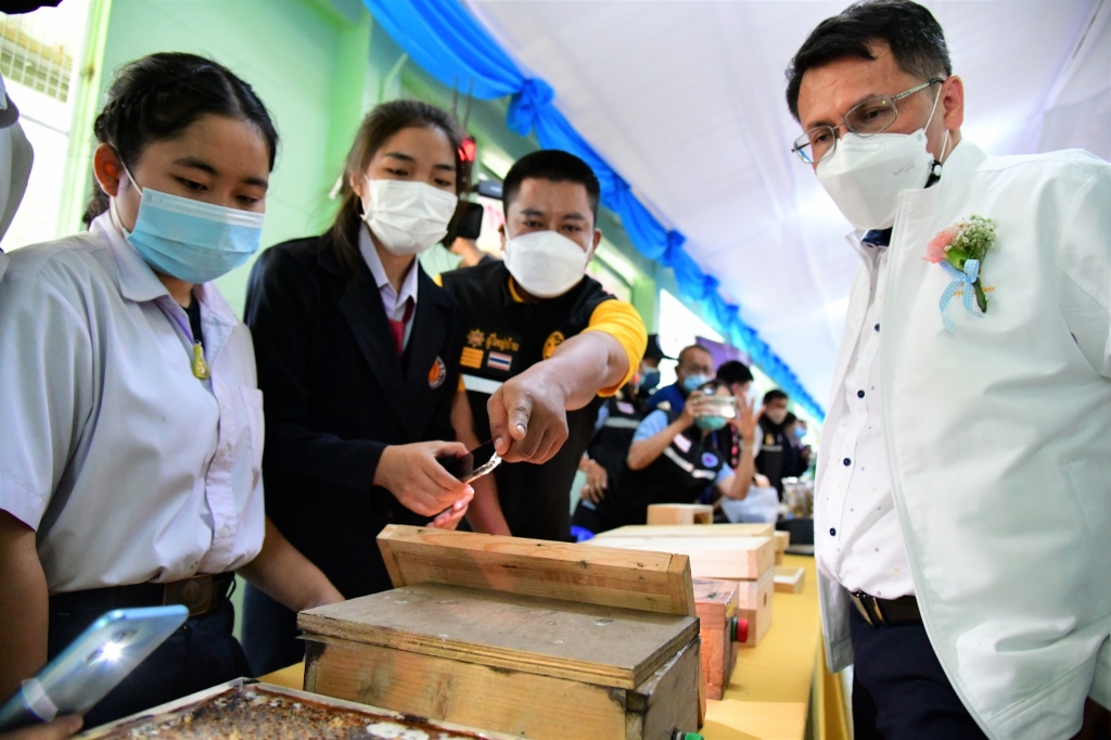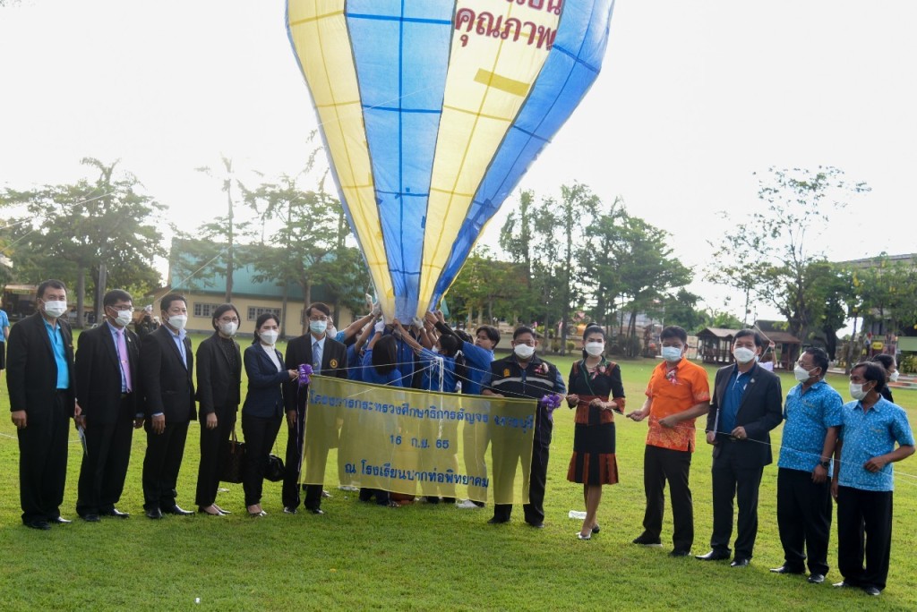 ในการนี้ ผู้ตรวจราชการ ศธ.และคณะ ได้ร่วมกิจกรรมทดลองทำโครงงานวิทยาศาสตร์ “บอลลูนอากาศร้อน” วัสดุทำจากกระดาษหนังสือพิมพ์หรือกระดาษแก้ว ซึ่งต้องใช้ความสามัคคีของสมาชิกภายในกลุ่มทั้ง 8 คน ตั้งแต่เริ่มลงมือปฏิบัติ การคิดวางแผน การแบ่งหน้าที่ในการทำงานรวมถึงความรับผิดชอบต่อหน้าที่ของตนเอง และสิ่งที่สำคัญที่สุดของการทำบอลลูนอากาศร้อนคือการยอมรับฟังความคิดเห็นของผู้อื่น