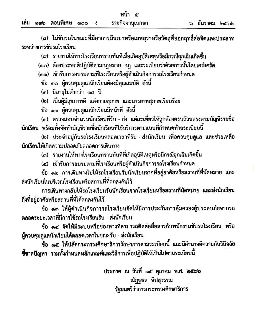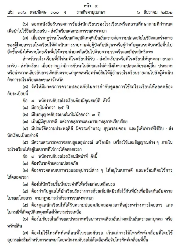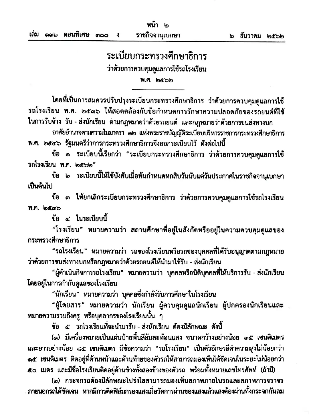 ระเบียบ ศธ. ว่าด้วยการควบคุมดูแลการใช้รถโรงเรียน พ.ศ. 2562