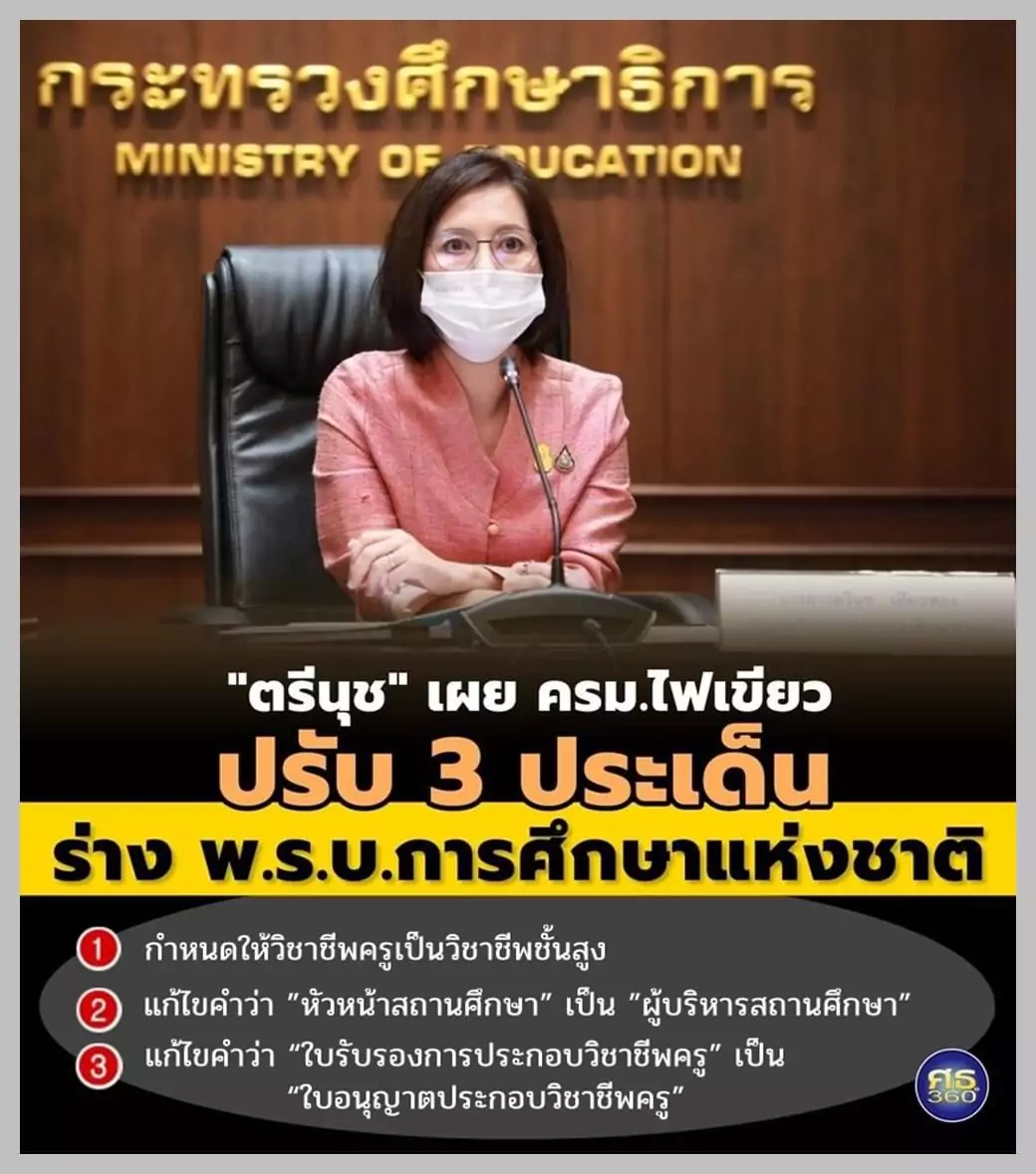 คณะรัฐมนตรี รับทราบปรับร่าง พ.ร.บ. การศึกษาแห่งชาติ ใน 3 ประเด็น นายกฯ หนุนวิชาชีพครูเป็นวิชาชีพชั้นสูง “ตรีนุช” เดินหน้าทำกฎหมายลูกรองรับปฏิรูปการศึกษา