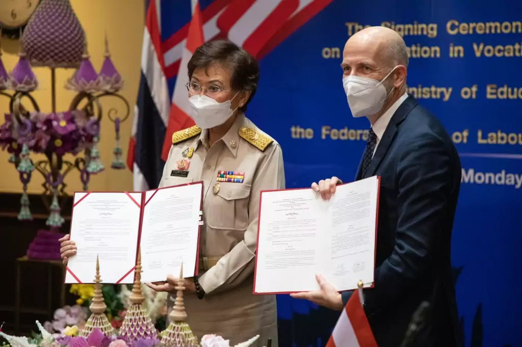 ระหว่างกระทรวงศึกษาธิการแห่งราชอาณาจักรไทย กับกระทรวงแรงงานและเศรษฐกิจแห่งสาธารณรัฐออสเตรีย (Memorandum of Understanding on Cooperation in Vocational Education in Work-based Training between the Ministry of Education of the Kingdom of Thailand and the Federal Ministry of Labour and Economy of the Republic Austria)