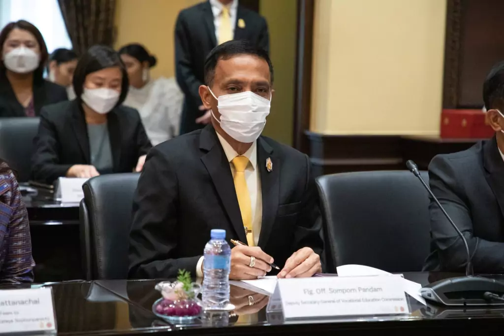 เพื่อความร่วมมือกันอันเป็นประโยชน์ในการส่งเสริมความร่วมมือด้านอาชีวศึกษา รวมถึงการพัฒนาทรัพยากรบุคคลสำหรับรองรับอุตสาหกรรม และโครงการต่าง ๆ ในเขตพัฒนาพิเศษภาคตะวันออก (EEC) โดยมีว่าที่ร้อยตรี ธนุ วงษ์จินดา เลขาธิการคณะกรรมการการอาชีวศึกษา พร้อมด้วยเรืออากาศโท สมพร ปานดำ รองเลขาธิการคณะกรรมการการอาชีวศึกษา เข้าร่วม