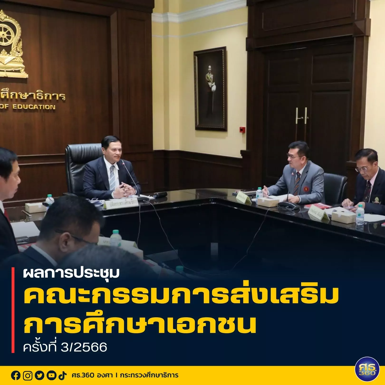กระทรวงศึกษาธิการ 29 มิถุนายน 2566 / นายอรรถพล สังขวาสี ปลัดกระทรวงศึกษาธิการ เปิดเผยภายหลังเป็นประธานการประชุมคณะกรรมการส่งเสริมการศึกษาเอกชน (กช.) ครั้งที่ 3/2566 โดยว่าที่ร้อยตรี ธนุ วงษ์จินดา เลขาธิการ กอศ., นายมณฑล ภาคสุวรรณ์ เลขาธิการ กช., ผู้ทรงคุณวุฒิด้านการศึกษาพิเศษ, ผู้แทนกรมพัฒนาฝีมือแรงงาน กรมบัญชีกลาง สำนักงบประมาณ และผู้แทนสมาคมจากภาคเอกชน เข้าร่วมประชุม ณ ห้องประชุมราชวัลลภ และผ่านระบบออนไลน์