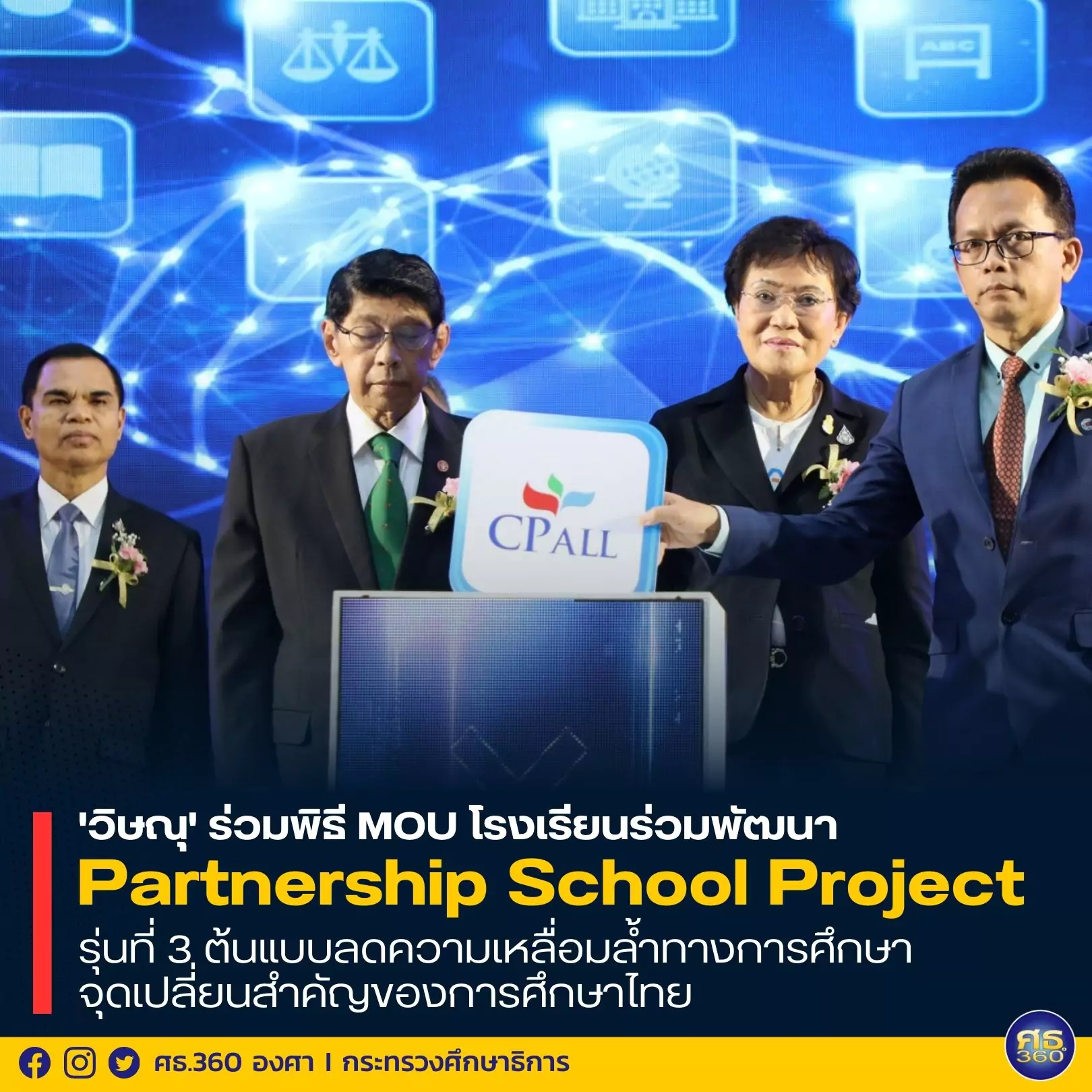 หอประชุมคุรุสภา 29 มีนาคม 2566 – ศาสตราจารย์กิตติคุณ วิษณุ เครืองาม รองนายกรัฐมนตรี เป็นประธานในพิธีลงนามบันทึกความเข้าใจว่าด้วยความร่วมมือโครงการ “โรงเรียนร่วมพัฒนา Partnership School Project” รุ่นที่ 3 โดยคุณหญิงกัลยา โสภณพนิช รัฐมนตรีช่วยว่าการกระทรวงศึกษาธิการ ร่วมลงนามกับภาคเอกชนกว่า 20 หน่วยงาน