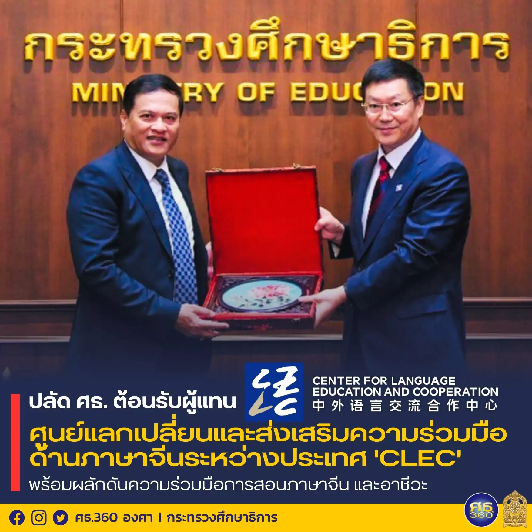 ห้องประชุมราชวัลลภ กระทรวงศึกษาธิการ 23 มีนาคม 2566 / นายอรรถพล สังขวาสี ปลัดกระทรวงศึกษาธิการ (ปลัด ศธ.) ให้การต้อนรับ นายหู จื้อผิง และคณะผู้แทนจากศูนย์แลกเปลี่ยนและส่งเสริมความร่วมมือด้านภาษาจีนระหว่างประเทศ กระทรวงศึกษาธิการแห่งสาธารณรัฐประชาชนจีน (Center for Language Education and Cooperation : CLEC ) ในโอกาสเดินทางเยือนประเทศไทยครั้งแรกภายหลังสถานการณ์แพร่ระบาดของโรคโควิด-19 พร้อมหารือความร่วมมือด้านการศึกษาร่วมกัน