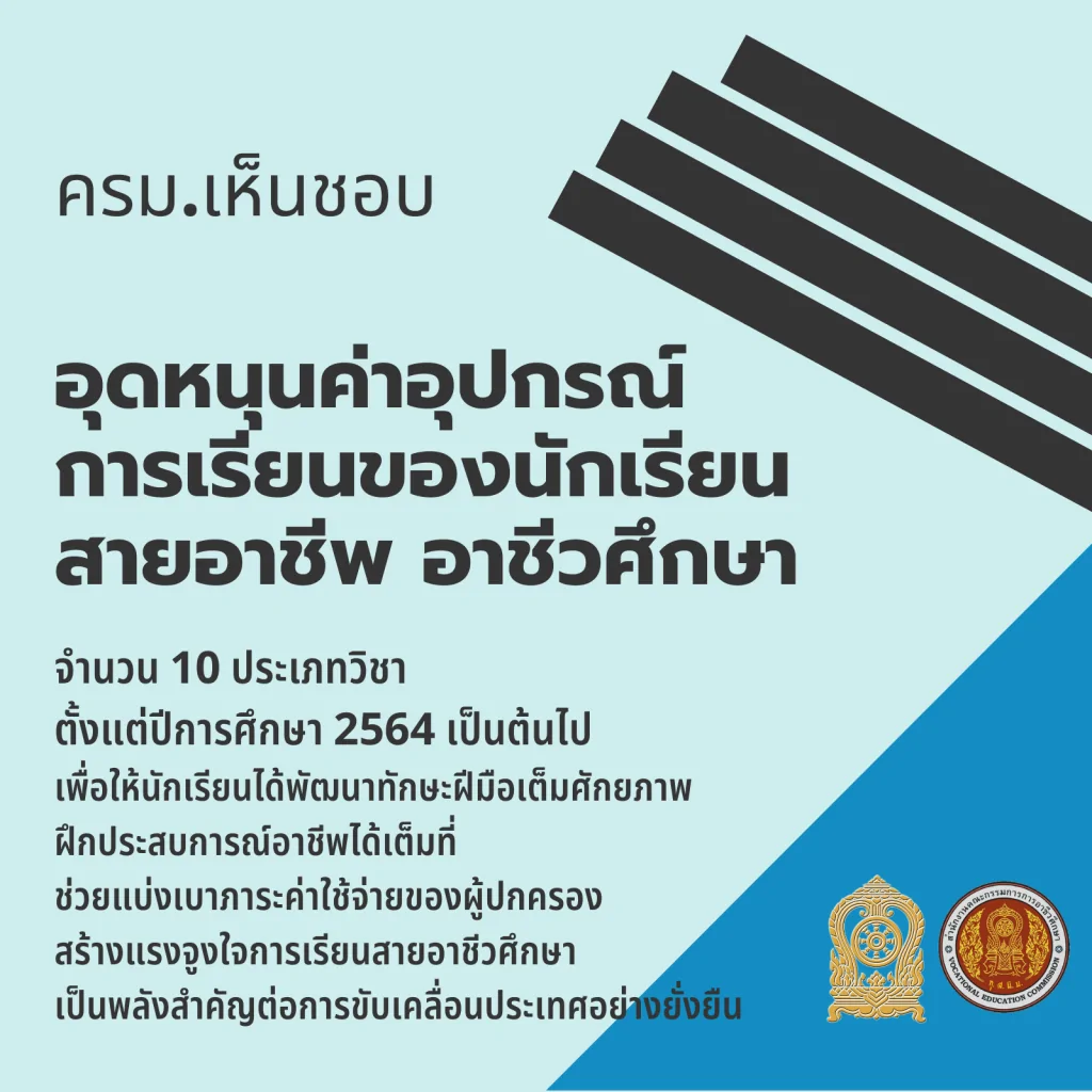 ครม.เห็นชอบอุดหนุนค่าอุปกรณ์การเรียนของนักเรียนสายอาชีพ อาชีวศึกษา