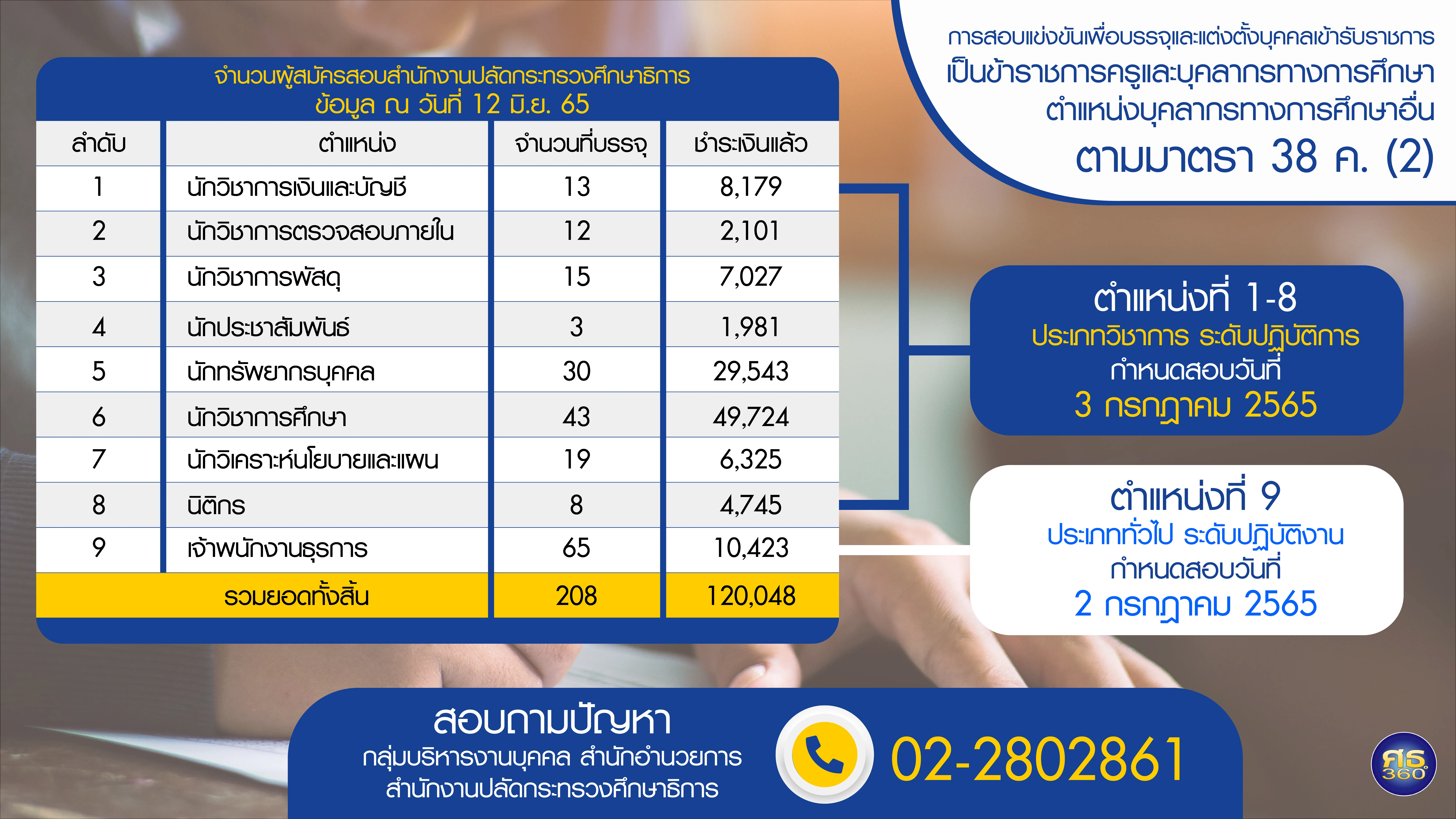 ถาม-ตอบ “การสอบเข้ารับราชการ ตำแหน่ง 38 ค. (2)” สำนักงานปลัดกระทรวงศึกษาธิการ, รับ 208 อัตรา สมัคร 1.2 แสนคน