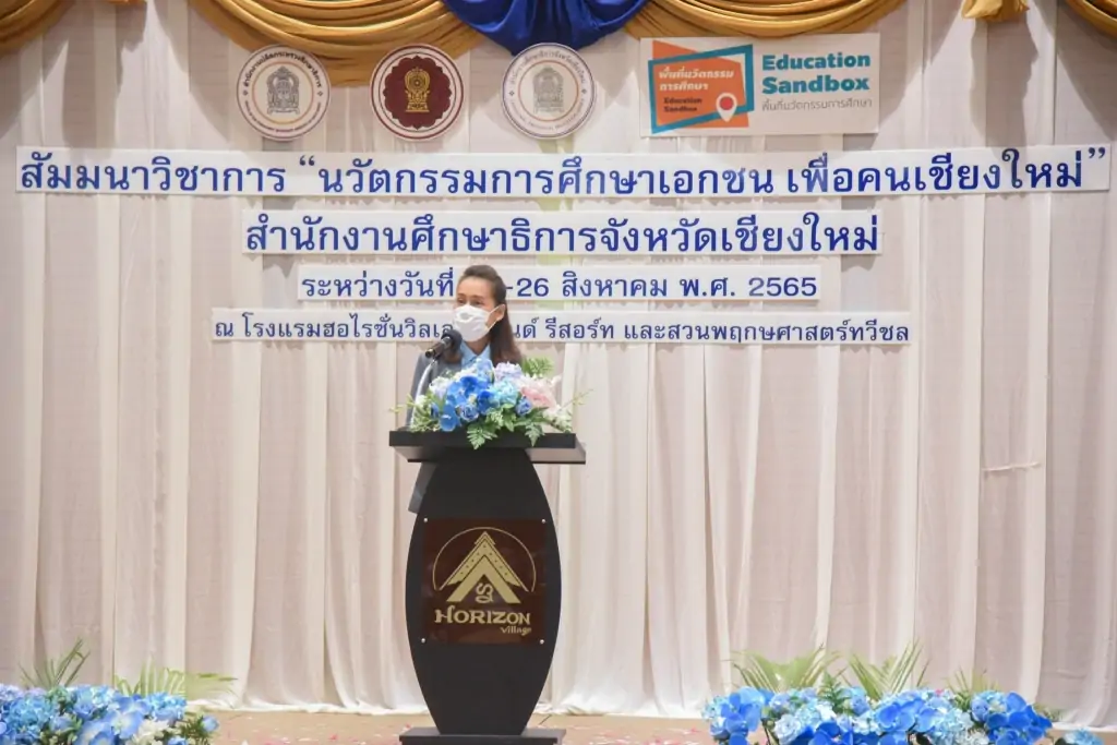“การจัดอบรมสัมมนาวิชาการในครั้งนี้ นอกจากเป็นการนำเสนอผลการดำเนินงานตามโครงการของ สช. แล้ว ยังเป็นการนำเสนอผลงานในฐานะที่จังหวัดเชียงใหม่ เป็นพื้นที่นวัตกรรมการศึกษา เนื่องจาก ศธ.กำหนดให้มีพื้นที่นวัตกรรมการศึกษาเพื่อคิดค้นและพัฒนานวัตกรรมการศึกษาและการเรียนรู้ ซึ่งการนำเสนอผลงานของโรงเรียนนำร่องพื้นที่นวัตกรรมการศึกษา ทั้ง 11 โรงเรียน ที่ได้นำมาแสดงในครั้งนี้ จะเป็นต้นแบบหรือนวัตกรรมการศึกษาเอกชนเพื่อคนเชียงใหม่ รวมทั้งดำเนินการขยายผลไปยังสถานศึกษาอื่น ๆ ในพื้นที่ใกล้เคียงต่อไป”