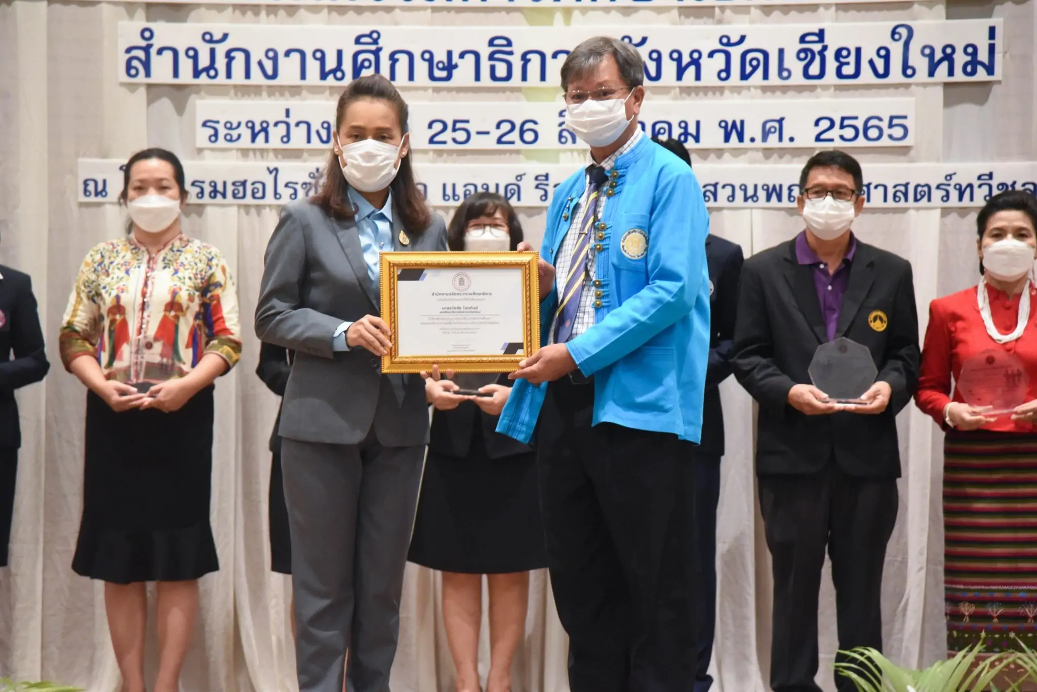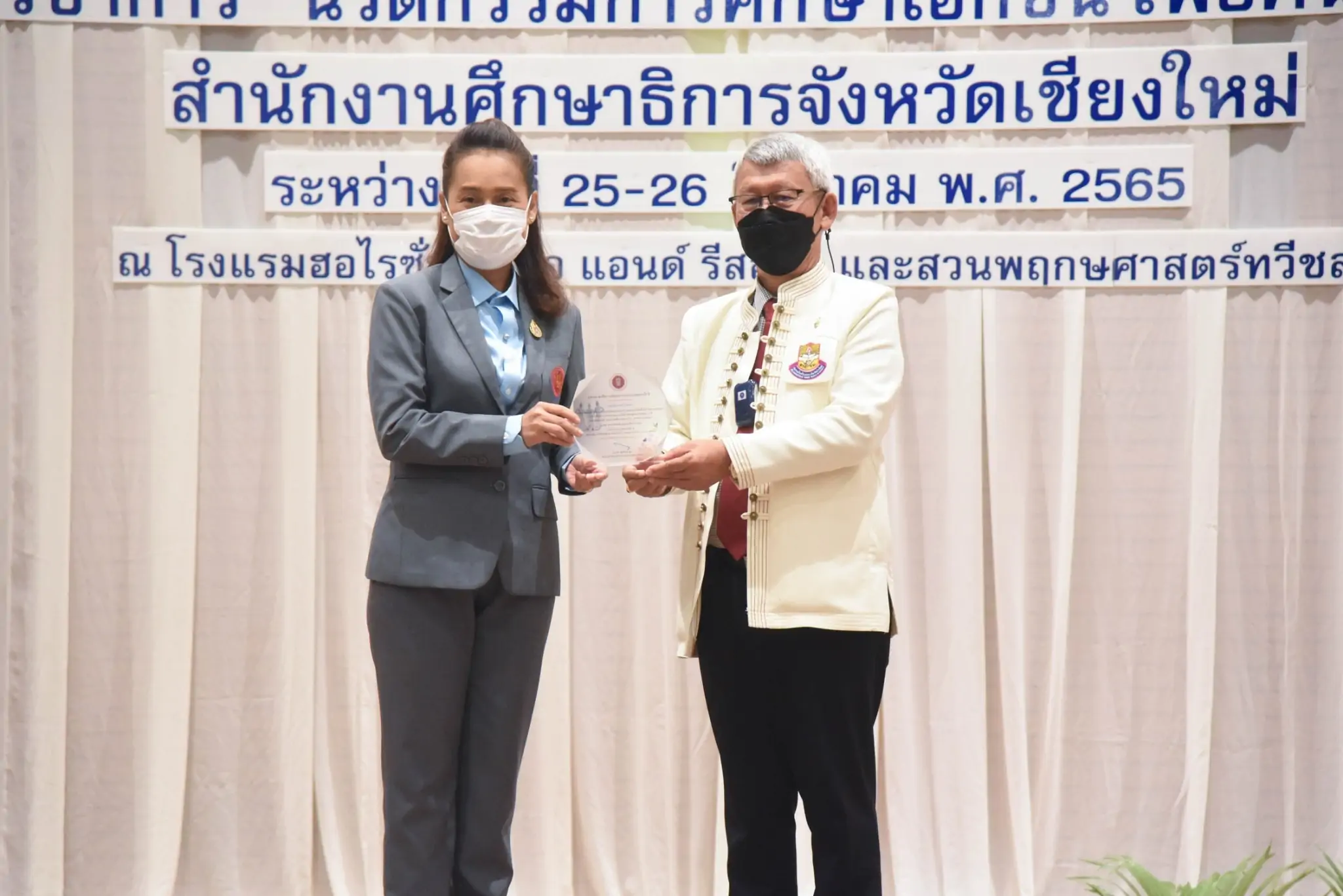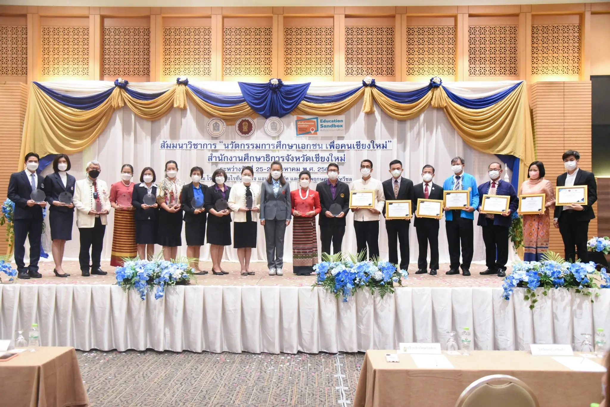 จากนั้น รมช.ศธ.ได้เยี่ยมชมนิทรรศการ “เส้นทางสู่นวัตกรรมการศึกษาเอกชนเพื่อคนเชียงใหม่” รวมทั้งเป็นประธานมอบโล่และประกาศเกียรติคุณแก่โรงเรียนเอกชนนําร่องพื้นที่นวัตกรรมการศึกษาจังหวัดเชียงใหม่ 11 แห่ง ได้แก่ โรงเรียนดาราวิทยาลัย, โรงเรียนสวนเด็กสันกำแพง, โรงเรียนรัตนาเอื้อวิทยา, โรงเรียนเอื้อวิทยา, โรงเรียนเชียงใหม่คริสเตียน, โรงเรียนอนุบาลร่มเกล้า, โรงเรียนบ้านปลาดาว, โรงเรียนพิมานเด็กเชียงใหม่, โรงเรียนปรินส์รอยแยลส์วิทยาลัย, สหวิทยาการเชียงใหม่ และโรงเรียนอนุบาลสุมาลี