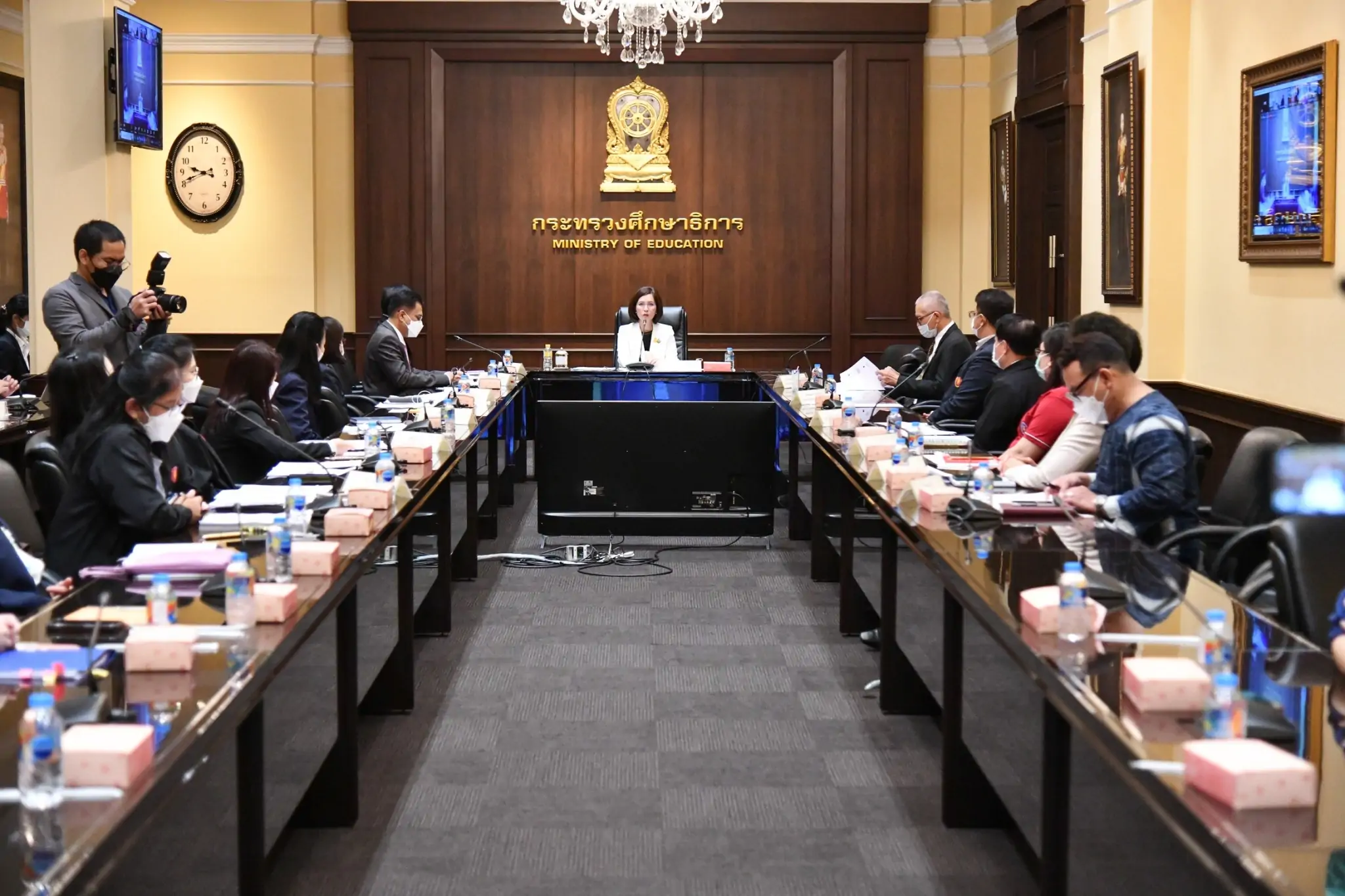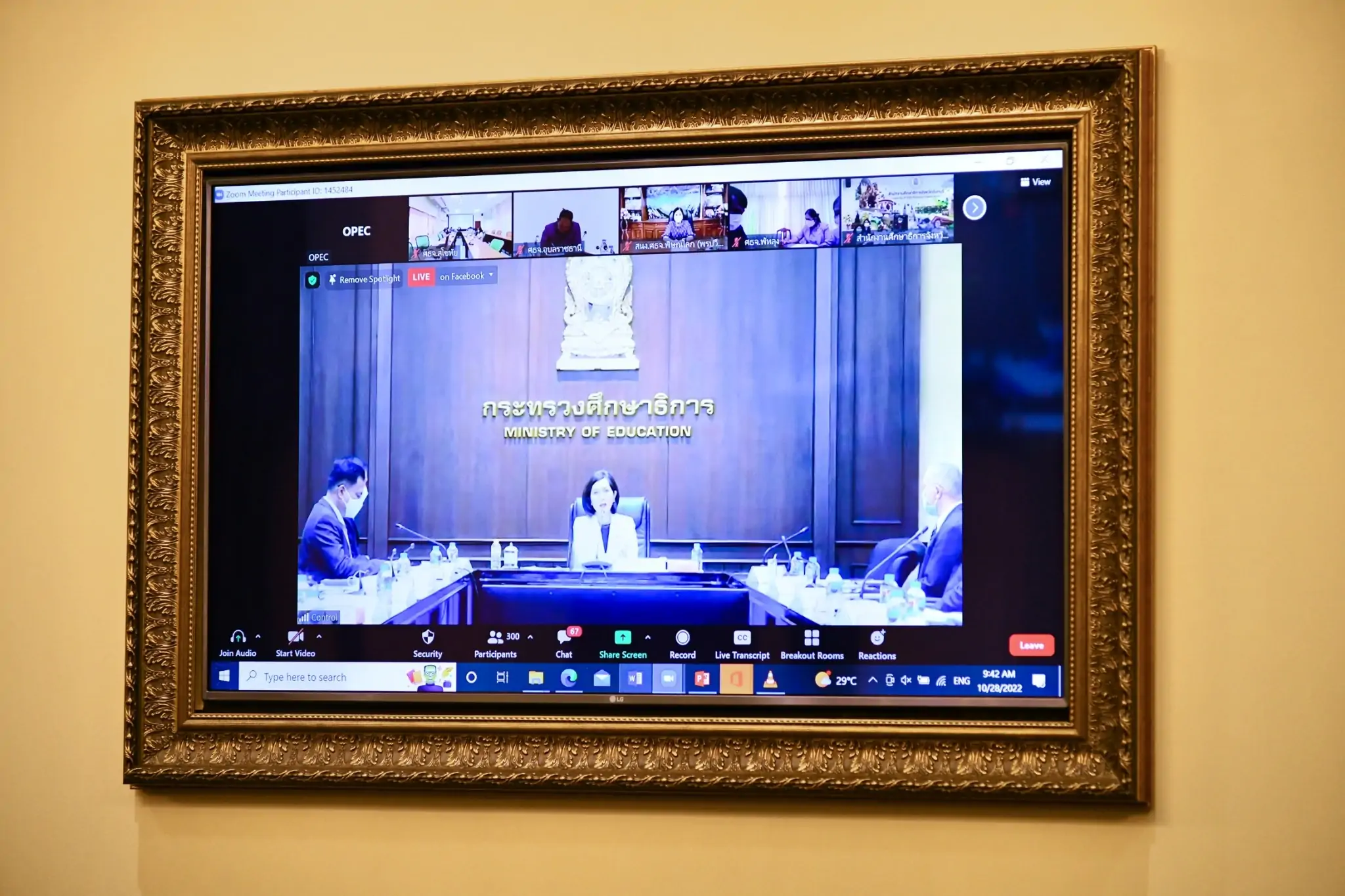 28 ตุลาคม 2565, ห้องประชุมราชวัลลภ กระทรวงศึกษาธิการ / นางสาวตรีนุช เทียนทอง รัฐมนตรีว่าการกระทรวงศึกษาธิการ เป็น ประธานการประชุมชี้แจงนโยบายและการเตรียมความพร้อมก่อนเปิดภาคเรียนของโรงเรียนเอกชน พร้อมด้วยนายมณฑล ภาคสุวรรณ์ เลขาธิการคณะกรรมการส่งเสริมการศึกษาเอกชน (เลขาธิการ กช.), นายประพัทธ์ รัตนอรุณ รองเลขาธิการ กช. โดยมีศึกษาธิการจังหวัด, ผอ.สำนักงานการศึกษาเอกชนจังหวัด, ประธาน ปส.กช., นายกสมาคมทางการศึกษาเอกชน ผู้บริหาร และครูโรงเรียนเอกชน เข้าร่วมประชุมผ่านระบบ Zoom Meeting และ Facebook สช.