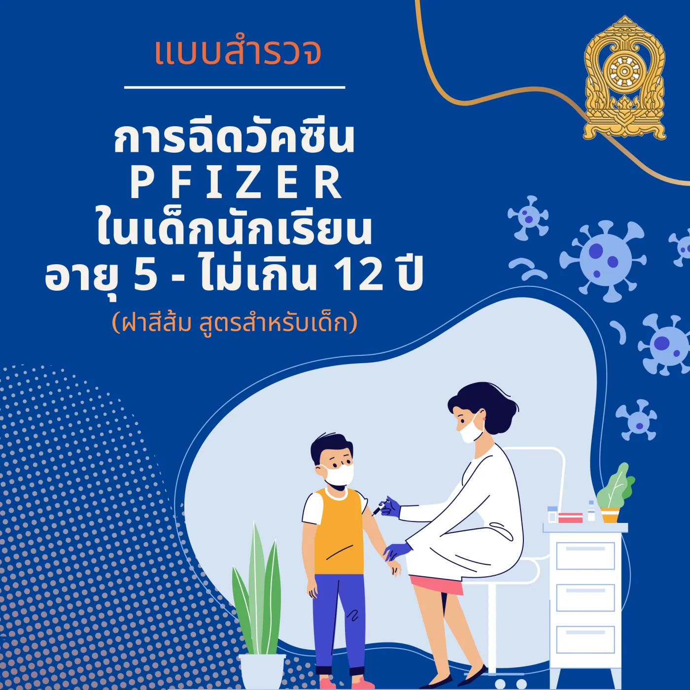 แบบสำรวจการฉีดวัคซีน Pfizer (ฝาสีส้ม สูตรสำหรับเด็ก) ในเด็กนักเรียนอายุ 5 – ไม่เกิน 12 ปี