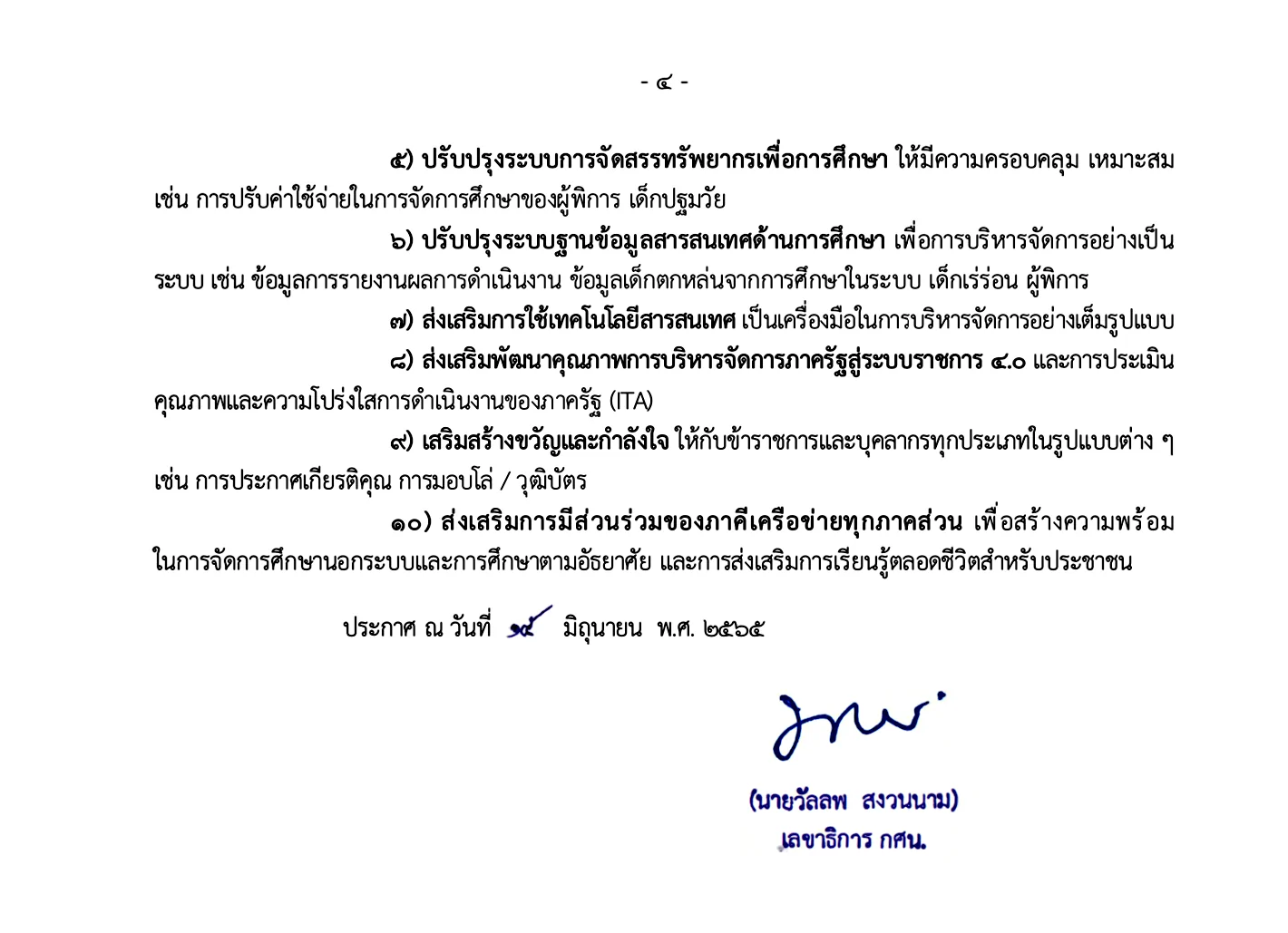 เรื่อง นโยบายและจุดเน้นการดําเนินงาน สํานักงาน กศน. ประจําปีงบประมาณ พ.ศ. ๒๕๖๕