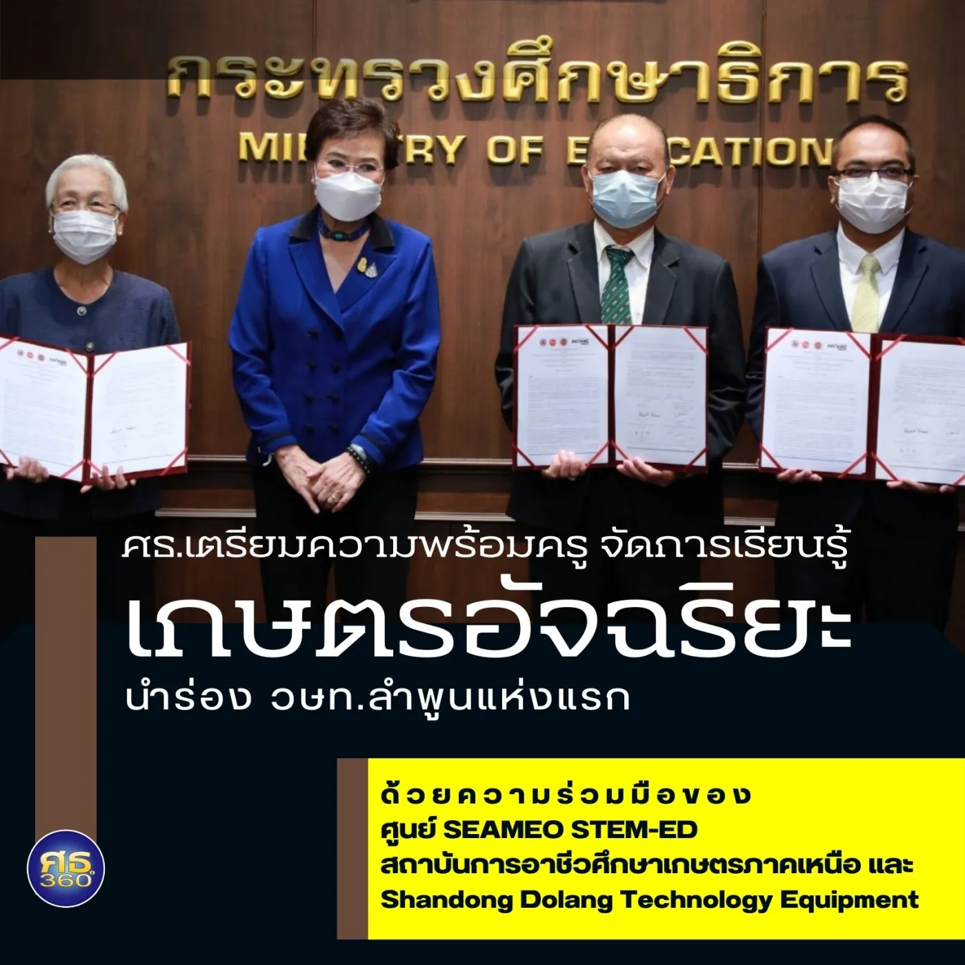 ศูนย์ SEAMEO STEM-ED สถาบันการอาชีวศึกษาเกษตรภาคเหนือ และบริษัท Shandong Dolang Technology Equipment จำกัด ร่วมลงนาม MOU เตรียมความพร้อมครูในการจัดการเรียนรู้เกษตรอัจฉริยะ ต่อยอดโครงการอัจฉริยะเกษตรประณีตในโรงเรียน เริ่มนำร่อง วษท.ลำพูนแห่งแรก