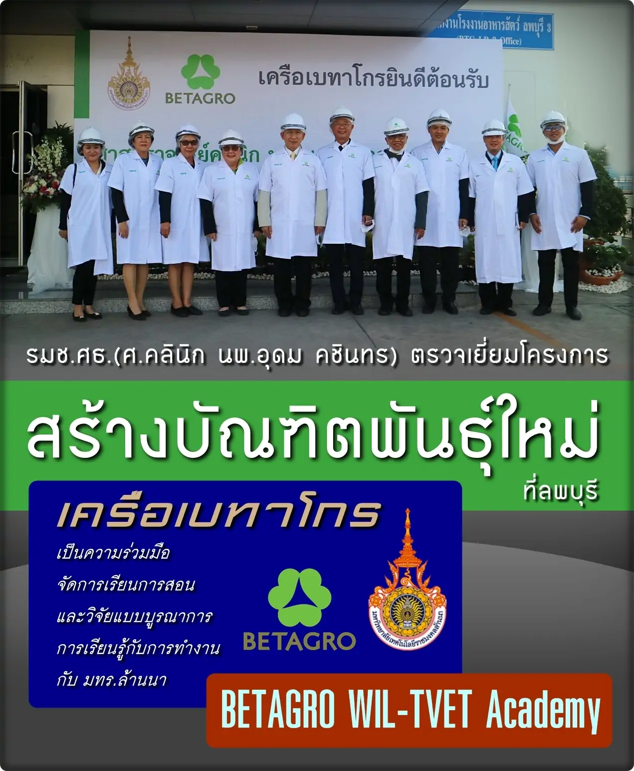 ในส่วนของบริษัท เบทาโกร จำกัด (มหาชน) และมหาวิทยาลัยเทคโนโลยีราชมงคลล้านนา ได้มีความร่วมมือกันในการพัฒนาศักยภาพกำลังคนให้สามารถแข่งขันได้ โดยฝึกทักษะการคิดวิเคราะห์ เป็นช่างปฏิบัติมืออาชีพที่มีแนวคิดเชิงวิศวกรรม ผู้เรียนได้เรียนจากสถานการณ์จริง ซึ่งจะเป็นประโยชน์กับตนเองและองค์กรในอนาคตข้างหน้า เพราะอาวุธที่สำคัญในโลกของการแข่งขันอย่างเสรี คือ คุณภาพ ที่เกิดจากการศึกษาเรียนรู้ มีความรู้ในวิชาชีพ รู้เท่าทันความเปลี่ยนแปลง และบ่มเพาะทักษะอย่างเข้มข้นให้เป็นสมรรถนะ รวมถึงการใฝ่รู้และใฝ่คุณภาพตลอดจนไม่มีการทุจริตคอร์รัปชั่น