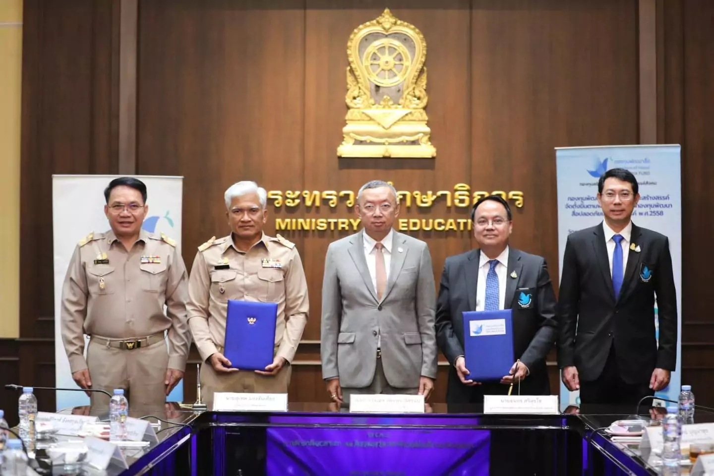 พลตำรวจเอก เพิ่มพูน ชิดชอบ รัฐมนตรีว่าการกระทรวงศึกษาธิการ (รมว.ศธ.) พร้อมด้วย นางสาวพิมพ์พร ชีวานันท์ เลขานุการรัฐมนตรีว่าการกระทรวงศึกษาธิการ นายสิริพงศ์ อังคสกุลเกียรติ ผู้ช่วยรัฐมนตรีประจำกระทรวงศึกษาธิการ (ผช.รมต.ศธ...