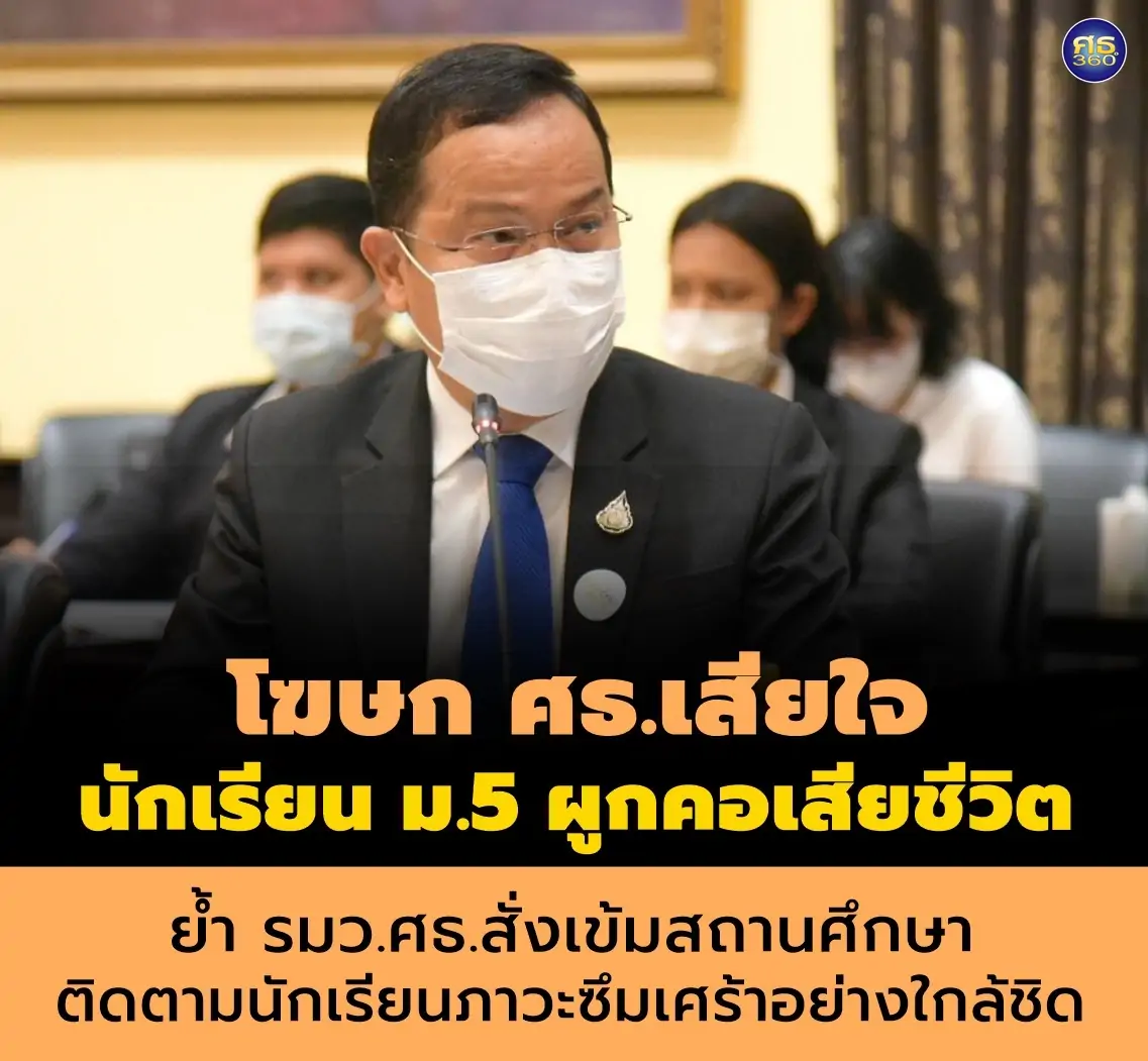 (16 กันยายน 2565) ดร.วีระ แข็งกสิการ รองปลัดกระทรวงศึกษาธิการ และโฆษกกระทรวงศึกษาธิการ กล่าวถึงกรณีเกิดเหตุนักเรียนหญิงชั้น ม.5ที่จังหวัดมุกดาหารประชดแฟนหนุ่ม ใช้เชือกผูกคอในตู้เสื้อผ้าจนเสียชีวิตนั้น ขณะนี้ กระทรวงศึก...