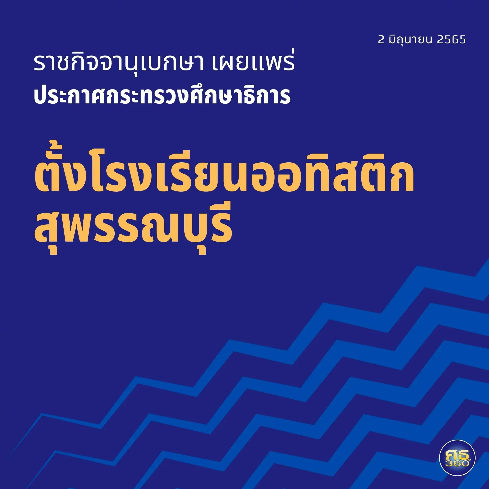 ราชกิจจานุเบกษาเมื่อวันที่ 2 มิถุนายน 2565 เผยแพร่ประกาศกระทรวงศึกษาธิการ เรื่อง ตั้งโรงเรียนออทิสติกสุพรรณบุรี ลงนามโดยนางสาวตรีนุช เทียนทอง รัฐมนตรีว่าการกระทรวงศึกษาธิการ โรงเรียนออทิสติกสุพรรณบุรี เป็นโรงเรียนในสังก...
