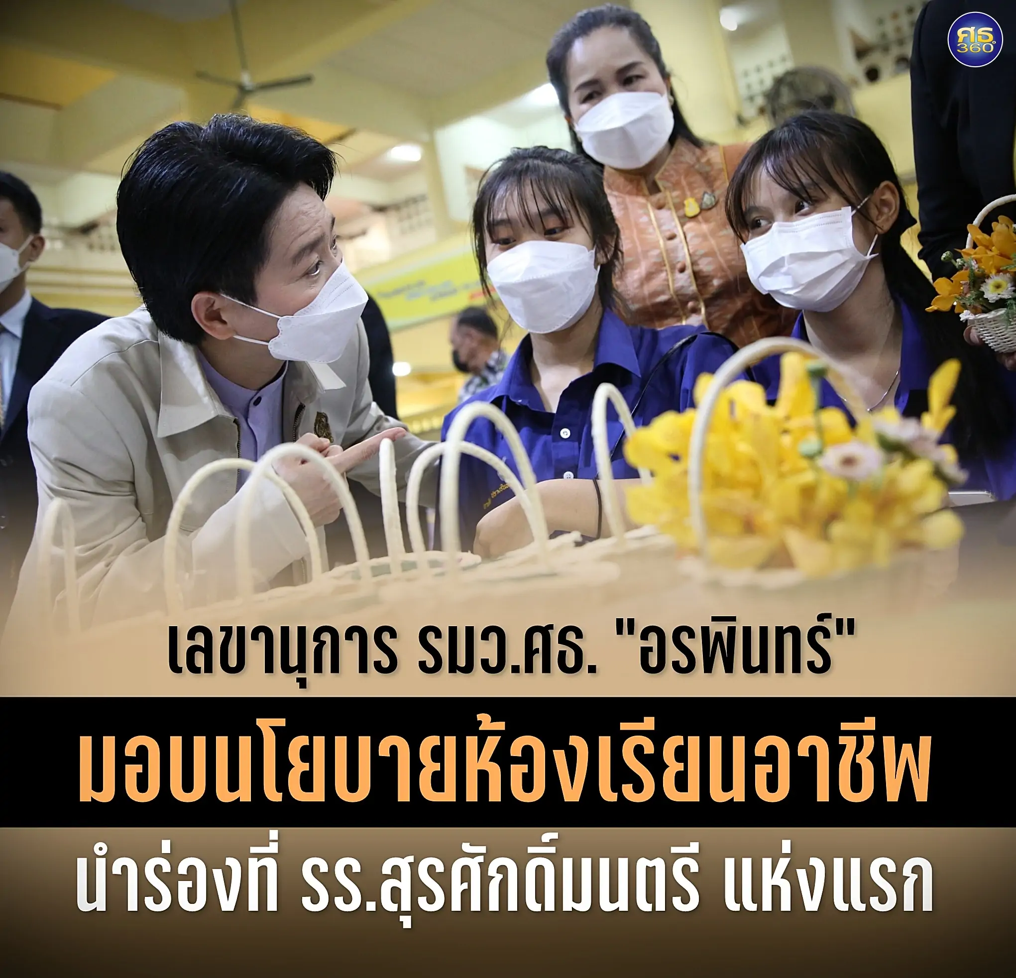 เลขานุการ รมว.ศธ. “อรพินทร์” มอบนโยบายห้องเรียนอาชีพ นำร่องที่ รร.สุรศักดิ์มนตรี แห่งแรก เน้นสร้างกำลังคนที่เข้มแข็งหลังโควิด 19 ด้วยอาชีพยุคใหม่ ย้ำการใช้แพลตฟอร์ม MOE Safety Center สร้างความปลอดภัยแก่บ้านหลังที่สองของน...