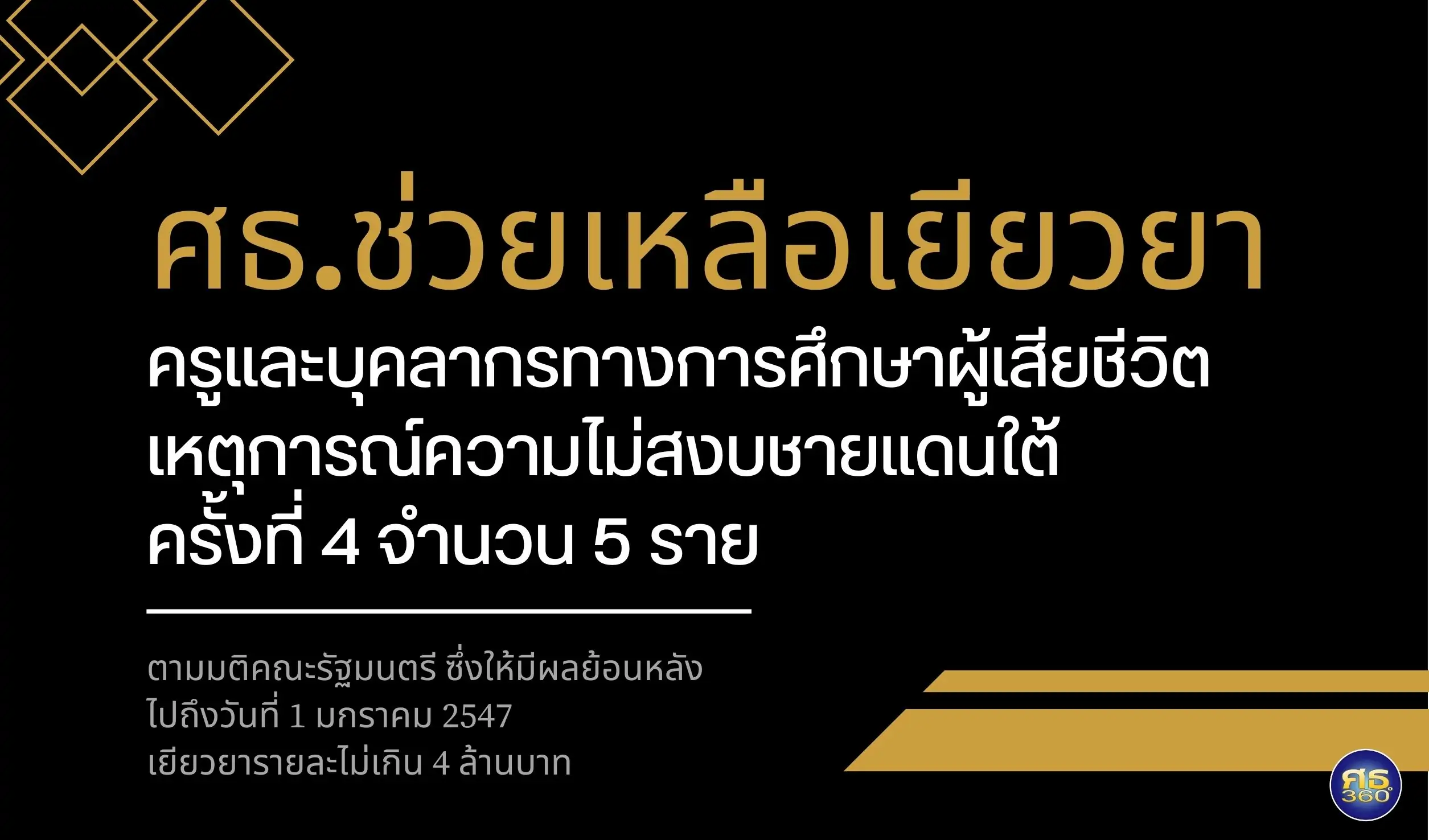 สำนักงานปลัดกระทรวงศึกษาธิการ ประกาศรายชื่อผู้ได้รับความเสียหาย ผู้ได้รับผลกระทบที่มีสิทธิได้รับเงินช่วยเหลือเยียวยา และจำนวนเงินช่วยเหลือเยียวยาครูและบุคลากรทางการศึกษาผู้เสียชีวิตอันเนื่องมาจากเหตุการณ์ความไม่สงบในจังห...