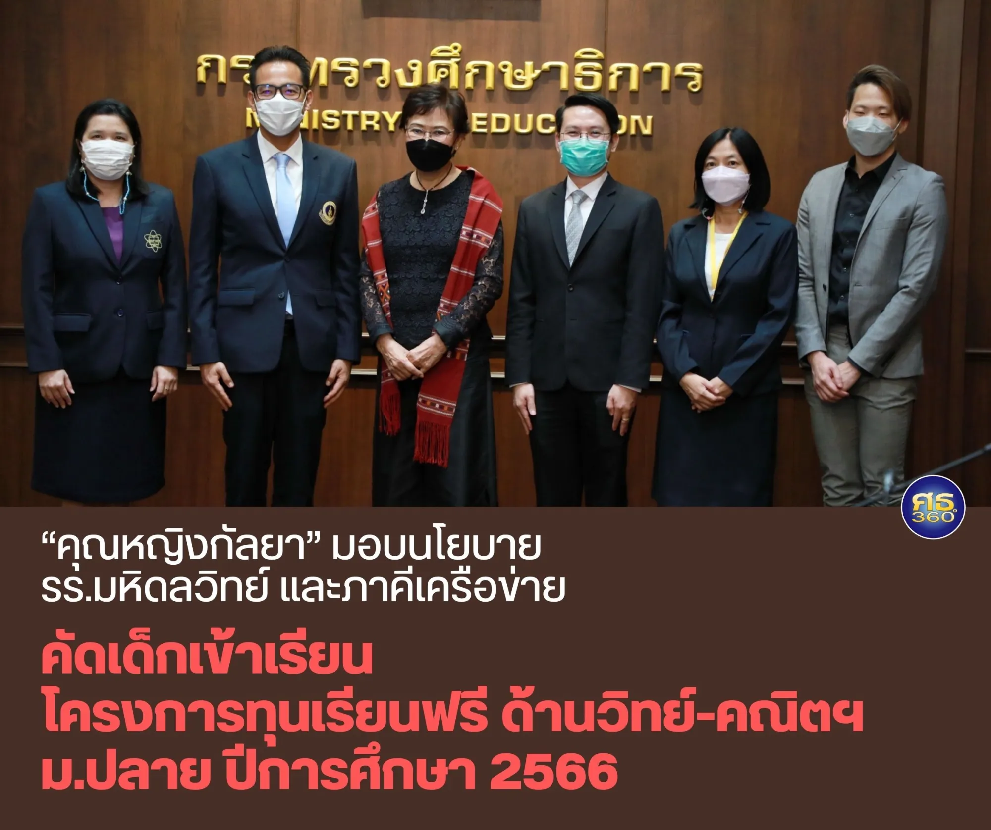 “คุณหญิงกัลยา” มอบนโยบายมหิดลวิทย์-ภาคีเครือข่าย คัดเด็กเข้าเรียนโครงการทุนเรียนฟรีด้านวิทย์-คณิตฯ ปีการศึกษา 2566 (22 มิถุนายน 2565) ดร.คุณหญิงกัลยา โสภณพนิช รัฐมนตรีช่วยว่าการกระทรวงศึกษาธิการ เป็นประธานการประชุมมอบนโย...