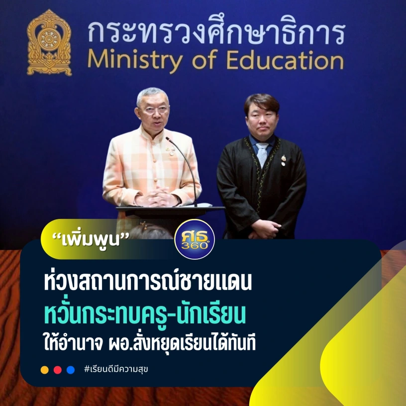 “ความปลอดภัยของผู้เรียนและครูต้องมาก่อน หากพบว่าพื้นที่มีความสุ่มเสี่ยงต่ออันตราย ผู้อำนวยการโรงเรียนสามารถสั่งหยุดเรียนได้ตามอำนาจของท่านได้ทันที โดยไม่ต้องขออนุมัติจากส่วนกลาง ขอส่งกำลังใจให้กับนักเรียน ครูและบุคลากรทางการศึกษาในพื้นที่เสี่ยง เราจะร่วมกันดูแลความปลอดภัยให้ดีที่สุด” โฆษก ศธ. กล่าว