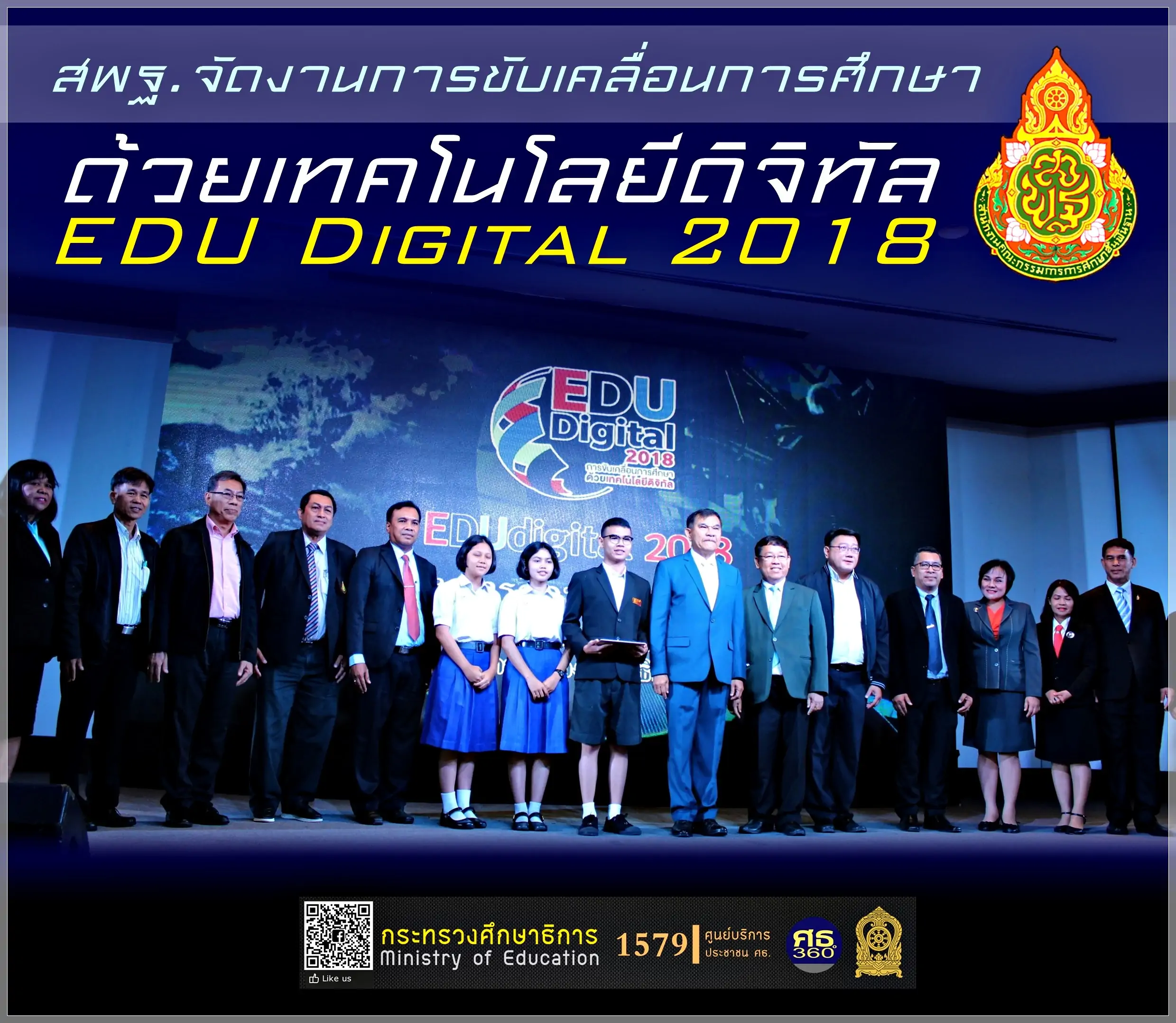 พล.อ.สุรเชษฐ์ ชัยวงศ์ รัฐมนตรีช่วยว่าการกระทรวงศึกษาธิการ เป็นประธานเปิดงานการขับเคลื่อนการศึกษาด้วยเทคโนโลยีดิจิทัล “EDU Digital 2018″ และการจัดนิทรรศการแสดงผลงานการบูรณาการการจัดการเรียนรู้ด้วยเทคโนโลยี เพื่อสร้างการรับรู้และเพิ่มโอกาสให้กับครูและบุคลากรทางการศึกษาในการเข้าถึงเครื่องมือและเทคโนโลยีนวัตกรรมที่ล้ำสมัย รวมถึงข้อมูลแหล่งเรียนรู้ ครอบคลุมถึงเรื่องความปลอดภัยไซเบอร์ และจุดประกายแนวคิดเกี่ยวกับการใช้เทคโนโลยีไปบูรณาการกับการจัดการเรียนรู้ เพื่อช่วยแก้ปัญหาทั้งในและนอกชั้นเรียน โดยมีนายบุญรักษ์ ยอดเพชร เลขาธิการคณะกรรมการการศึกษาขั้นพื้นฐาน รวมถึงผู้บริหารกระทรวงศึกษาธิการ ผู้อำนวยการสำนักงานเขตพื้นที่การศึกษา ศึกษาธิการจังหวัด ศึกษานิเทศก์ ผู้บริหารโรงเรียน ครู อาจารย์ นักเรียน นักศึกษา และประชาชนที่สนใจเข้าร่วมกว่า 1,000 คน เมื่อ