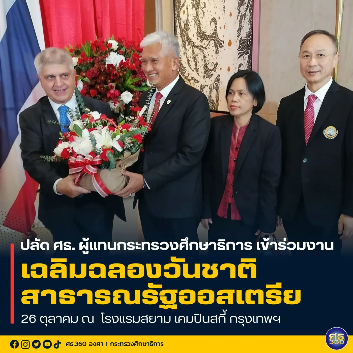 ปลัด ศธ.”สุเทพ” ผู้แทนกระทรวงศึกษาธิการ เข้าร่วมงานเฉลิมฉลองวันชาติ สาธารณรัฐออสเตรีย 26 ตุลาคม